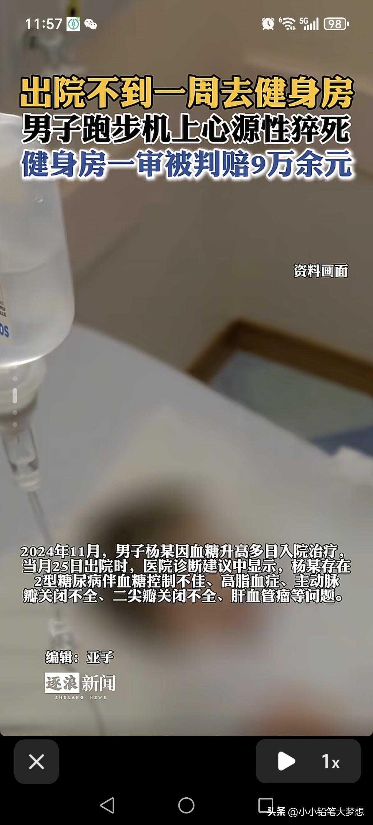 这种跟“敲诈勒索”没啥两样!男子出院不到一周去健身房,不料在跑步后猝死,他的家人把这个健身房告上法庭索要巨额,没想到真被这些家属要到了钱! 近日,裁判文书网有一个案例引起了大众的关注,网友们纷纷替健身房抱不平。 事情是这样子的,2024年的11月份,这名男子因为血糖升高到医院就诊,医生诊断他为二型糖尿病病人,因为他控糖不佳,医生就把他扣下来住院,诊断书上显示他除了患有糖尿病,还有高血脂、主动脉瓣关闭不全、二尖瓣关闭不全,肝血管肿瘤等等问题。 住院治疗出院不到一周,这名男子就去健身房进行剧烈运动,没想到就在跑步机上直接晕倒,后来被送往医院救治,但没救回来,死因为心源性猝死。 后来,这名男子的家属就把健身房和健身房投保的保险公司直接告上了法庭,近日,这个案件有了最新的判决结果。 法院认为,这名男子已经是成人,有完全的民事行为能力,对自己的人身安全和身体状况应该有自我重视的义务。但考虑到这个健身房没有给提供自动体外除颤仪救命设备,且这名男子倒地之后,工作人员没有紧急给他做心肺复苏等有效的救治措施。因为这个健身房没有完全做到保证顾客安全保障的义务,所以法院最后认定,健身房要承担这名男子死亡的10%的赔偿责任,共计健身房要赔这名男子近10万元,其中包括9万6元的各种损失赔偿和1067元健身房的会员费用。 那如果他去户外跑又去告谁?如果是机械的原因可以赔,自身原因自己承担,所以健身房真是倒大霉了,反过来说人家健身房还没告他死到人家营业场所晦气,健身房后续是否能正常运营还成问题! 血糖本来就有问题,再加上主动脉瓣和二尖瓣都有问题,都是高血脂,刚出院不到一周就剧烈运动,各种Buff跌满,这不是行走的炸弹吗? 按法院判决的这个逻辑,所有开店的人,店里要准备的专业的除颤仪和相关的工作人员必须会心肺复苏操作,问题这些东西也不是一般店能承受得起。