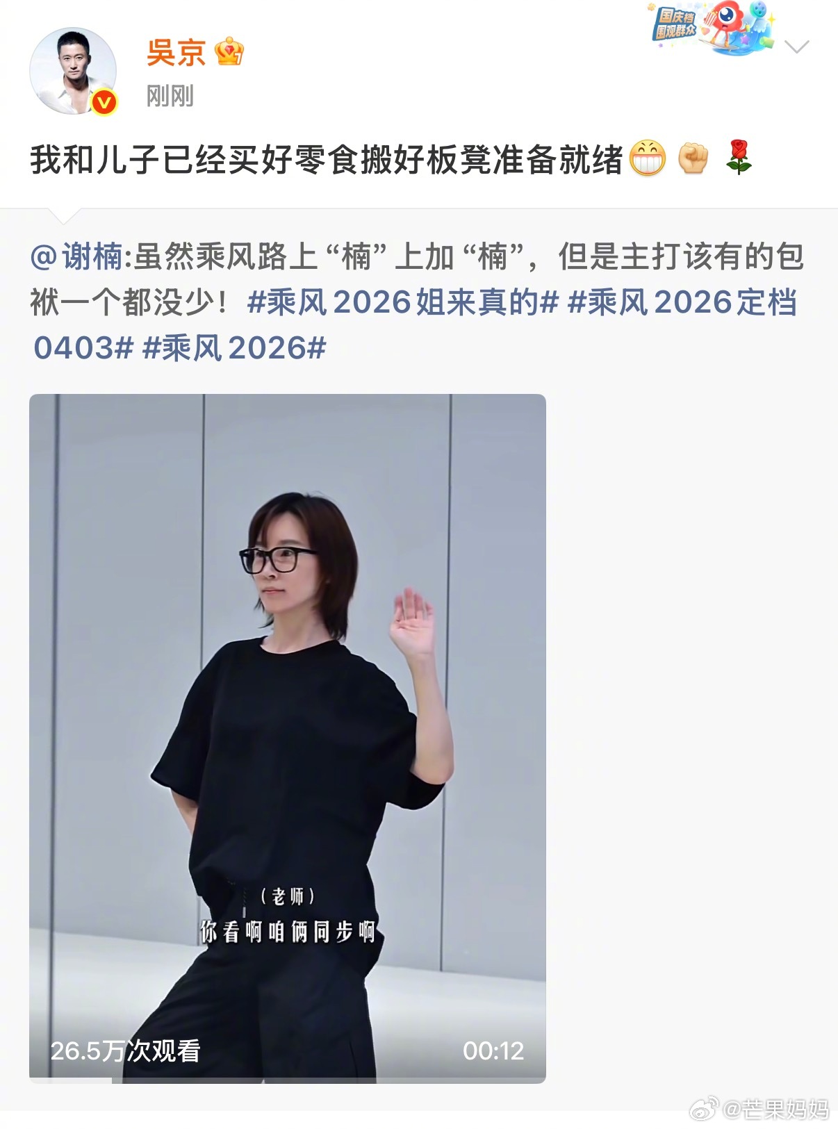 磕到真夫妻简直轻而易举吴京带着儿子给参加浪姐的谢楠打call啦