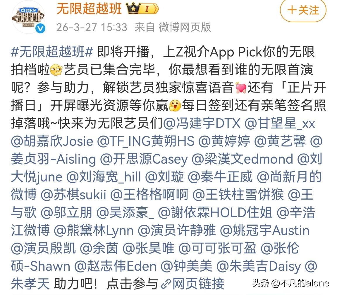 3月27日,综艺《无限超越班4》阵容官宣,导师有7位,分别是曾志伟、郝蕾、何赛飞、刘涛、刘晓庆、吴镇宇和李成儒。 何赛飞和刘晓庆是第一次加盟《无限超越班》,但她俩都常驻过吴彤的另一档节目《一路繁花》。 第四季常驻嘉宾共计34位,我比较熟悉的演员有冯建宇、甘望星、胡嘉欣、黄朔、梁汉文、刘璇、雪饼猴王铁柱、谢依霖、熊黛林、张昊唯、张可盈、张伦硕、钟美美、朱孝天等。 梁汉文演技这么好,他是来吊打其他人的吗? 时代峰峻签约艺人中,有3位参加过《无限超越班》,他们分别是刘耀文、余宇涵和黄朔。 《无限超越班4》将于3月28日开播,我们一起期待一下吧! 对于综艺《无限超越班4》常驻嘉宾阵容,大家有什么想说的?