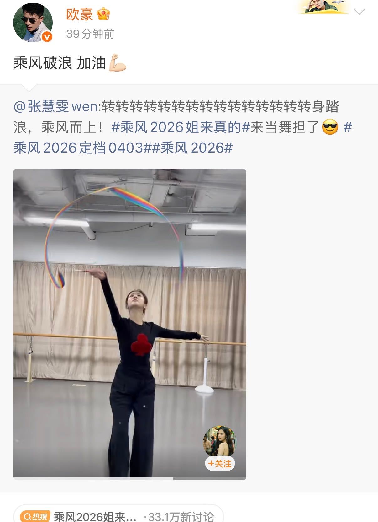 舞担就位!张慧雯官宣乘风2026 旋转展示硬核功底,娜扎、丞磊、欧豪、佟丽娅、林