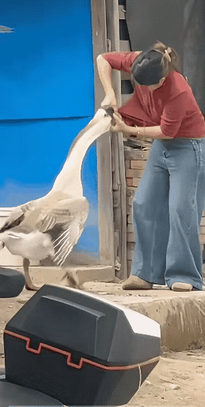 这只大鹅一定是想做最后的挣扎…… 一只大鹅趁男主人不在家, 居然敢攻击家里的女主