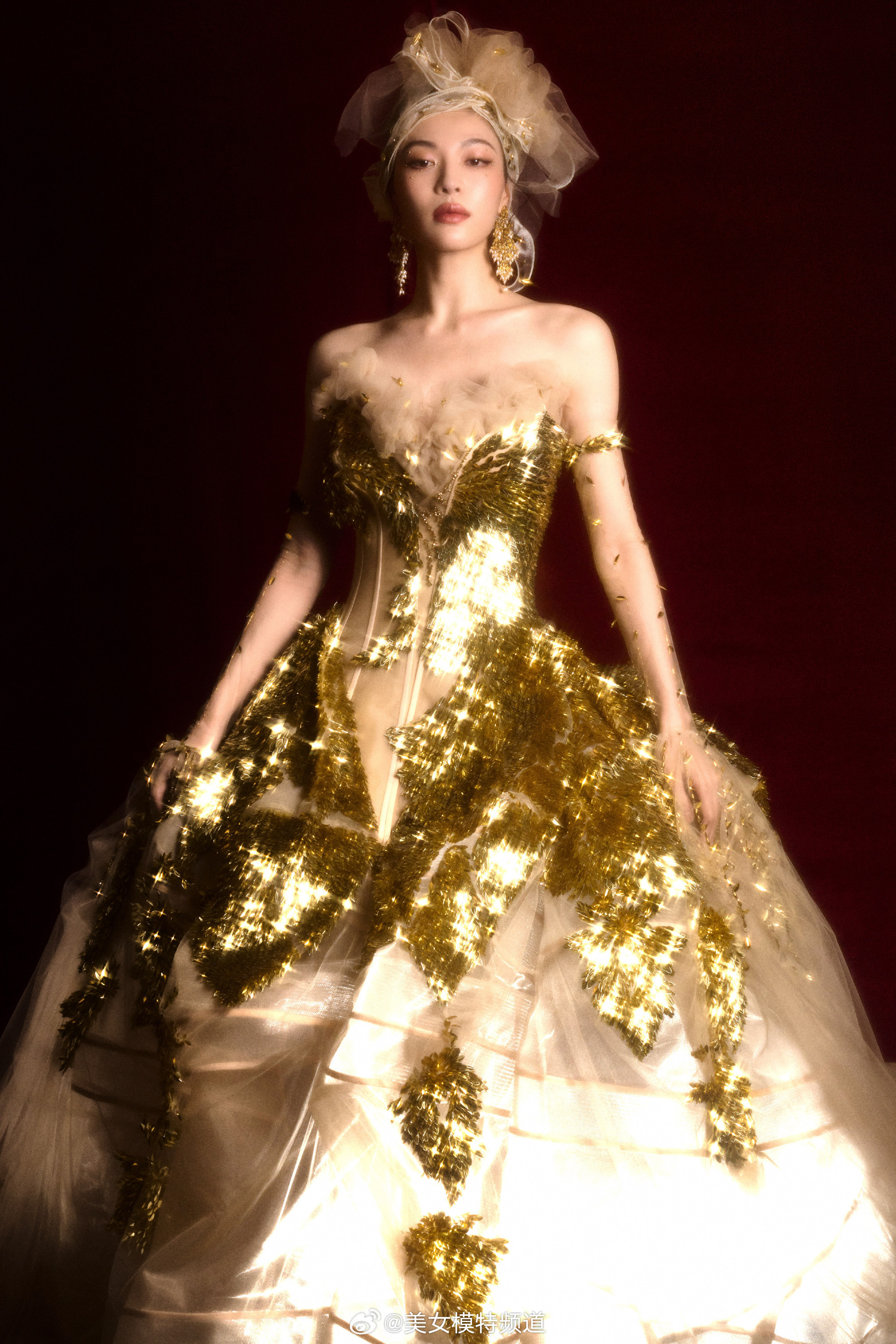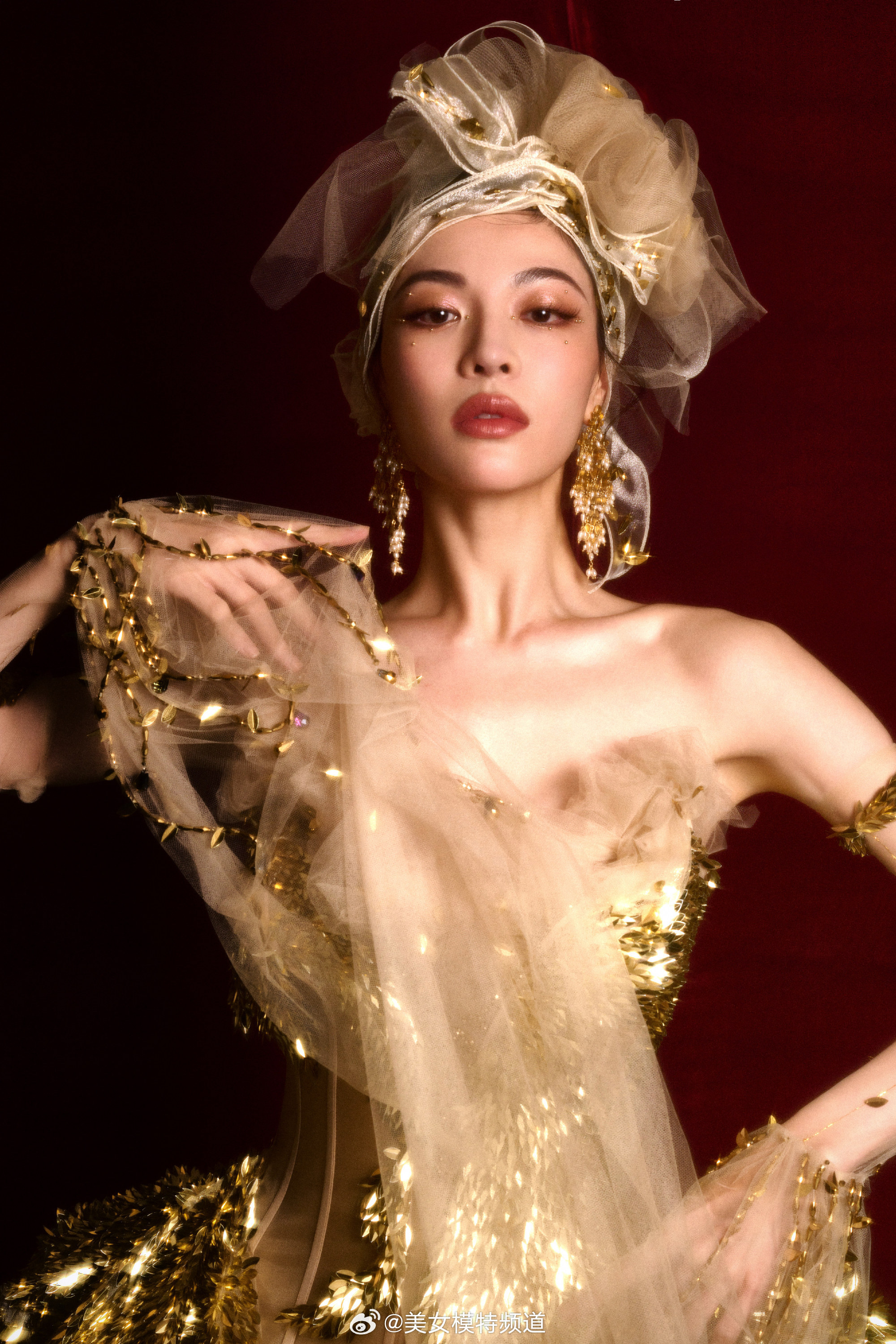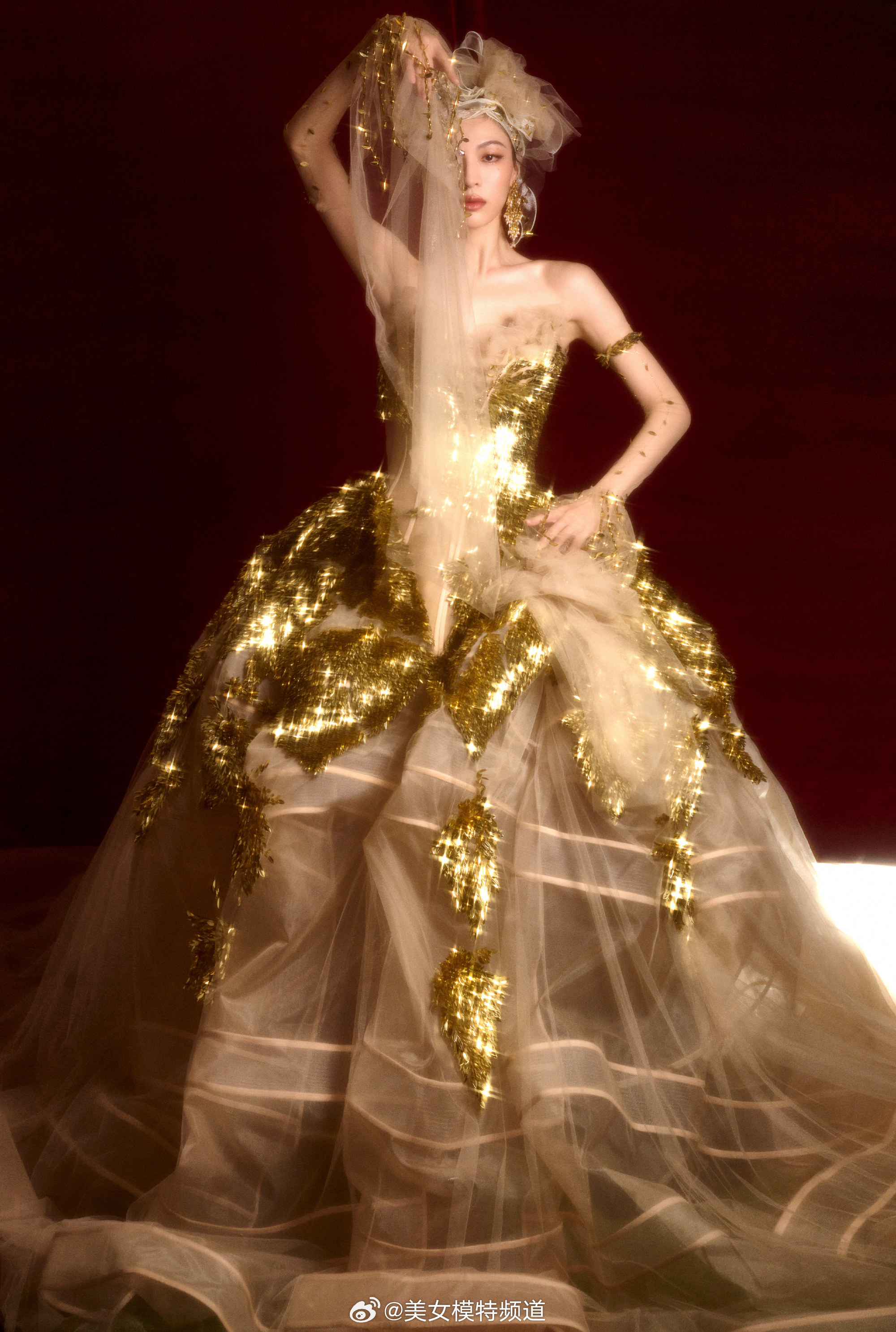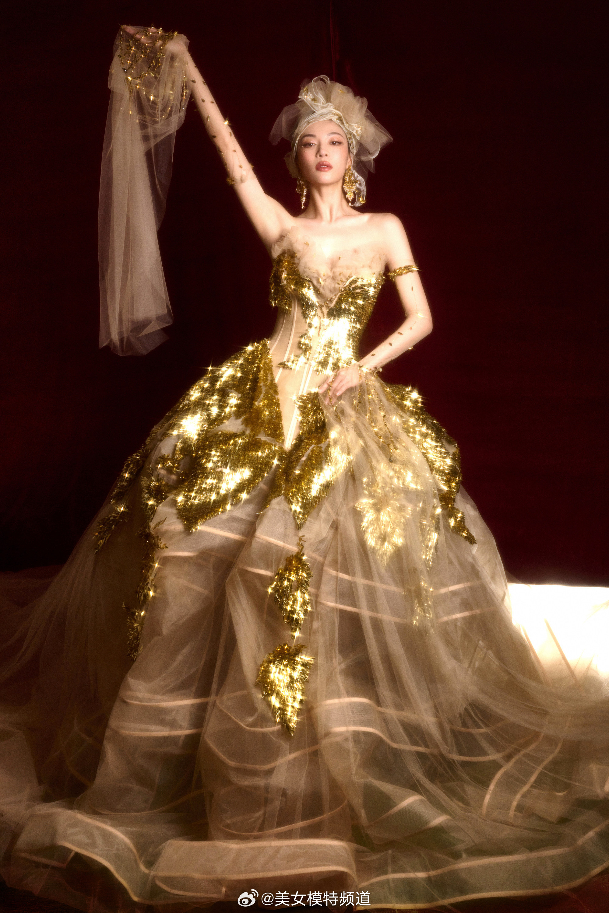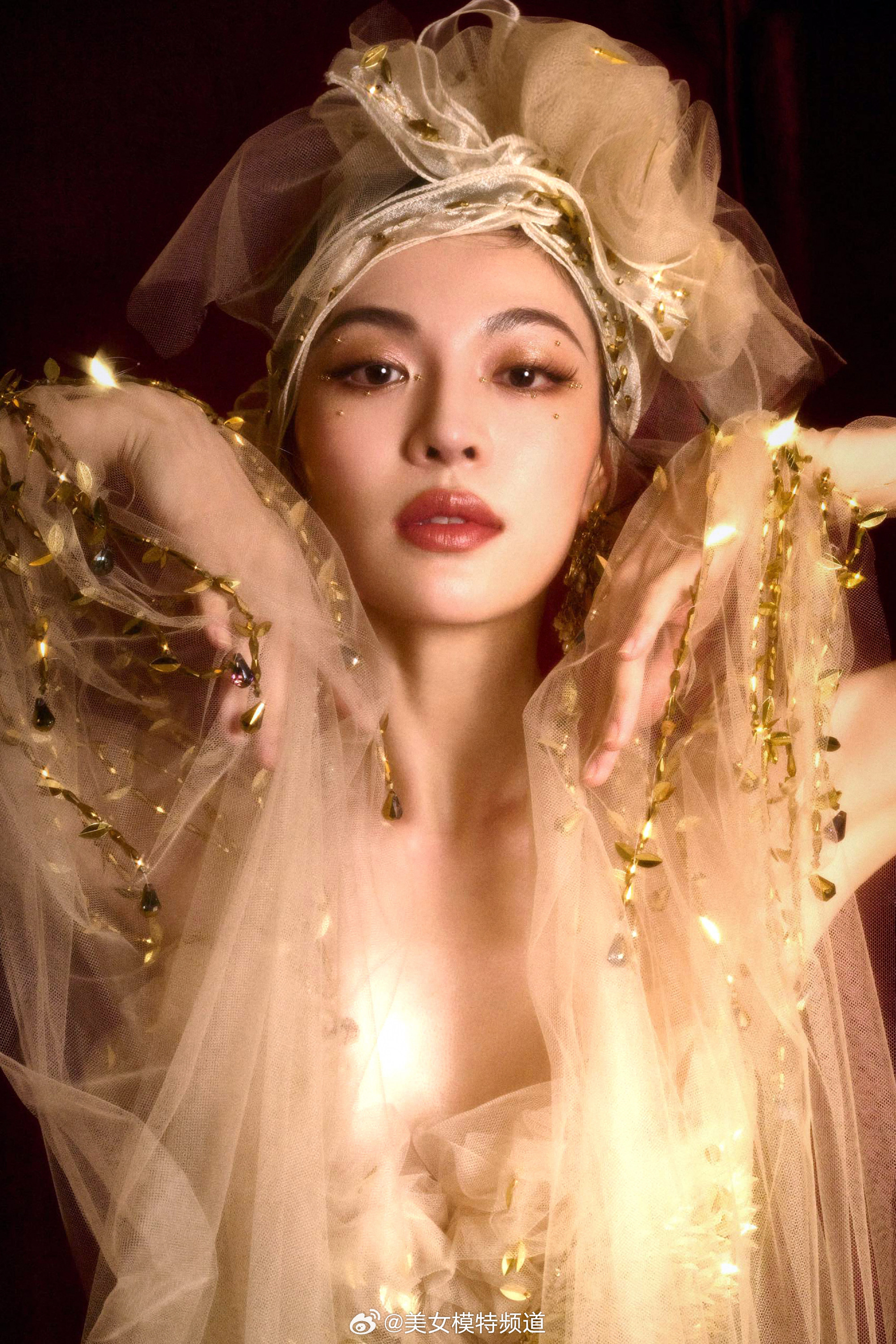 钟楚曦一袭鎏金薄纱裙星光熠熠