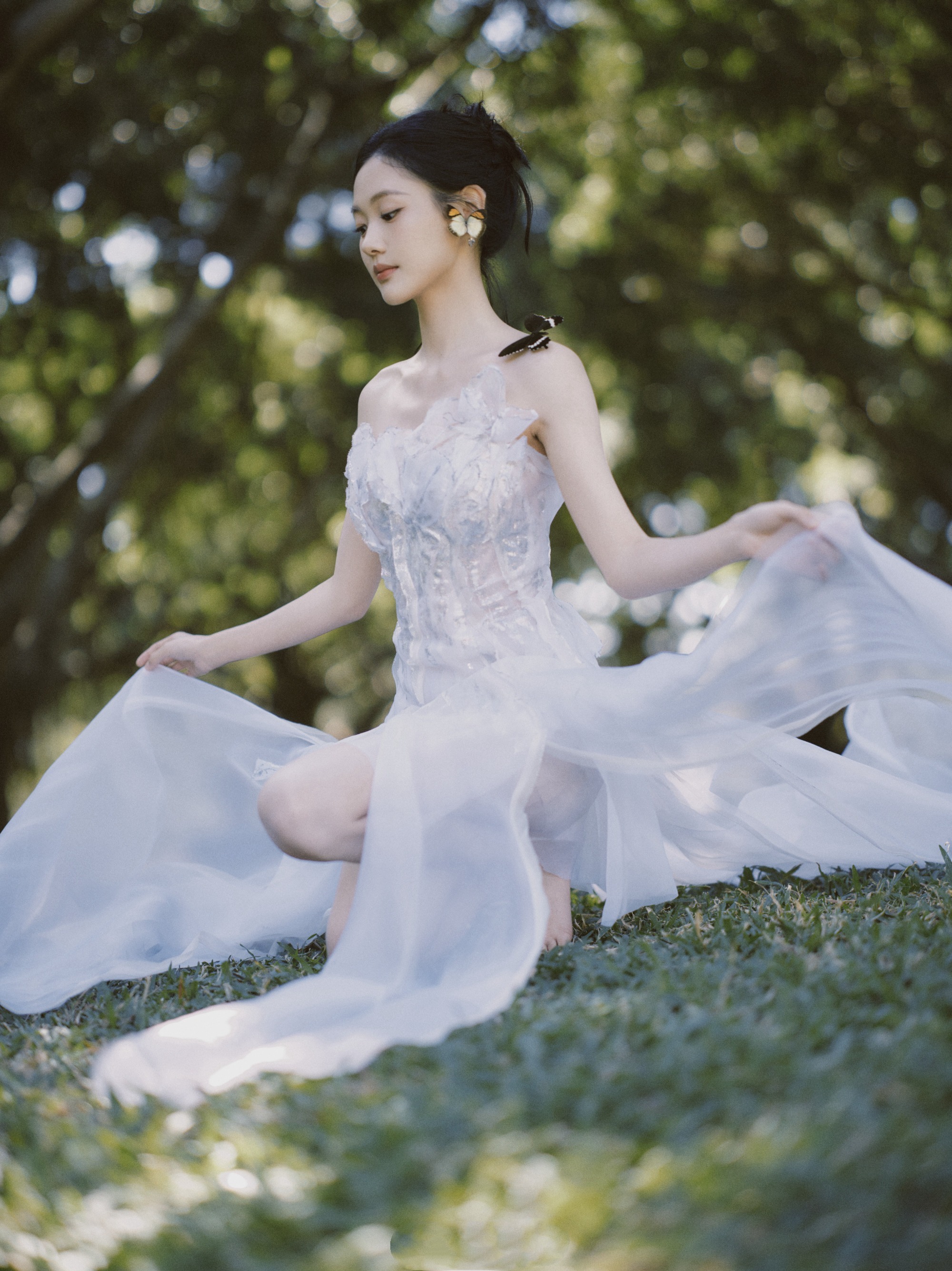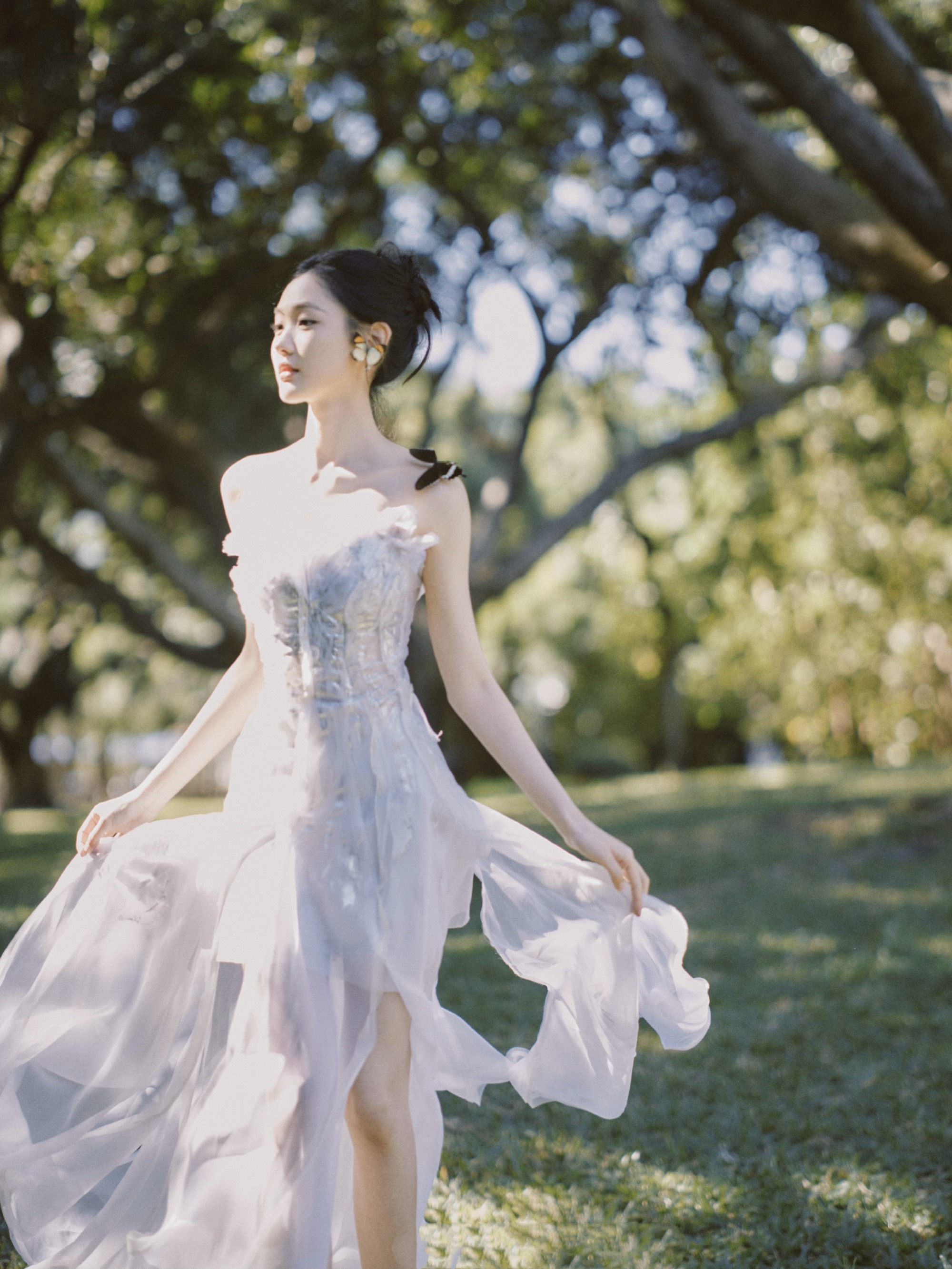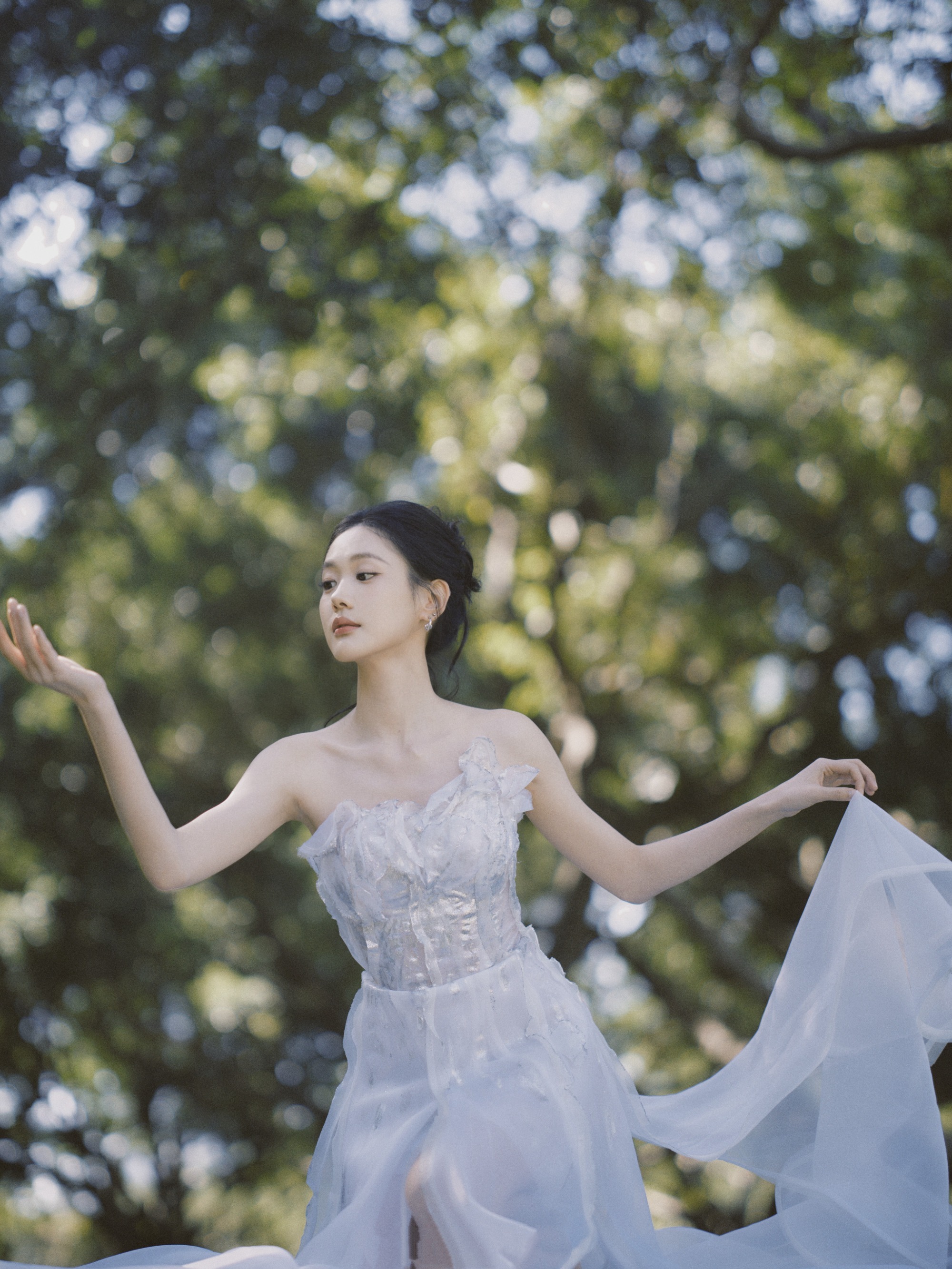 张昕懿唯美穿搭,一身白纱裙的优雅格调。张昕懿