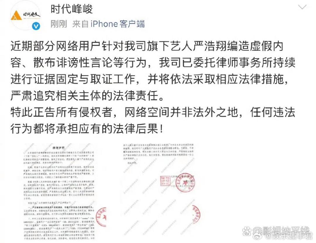 严浩翔方回应KTV传闻时代峰峻方发声明回应,称部分网络用户编造虚假内容、散布诽谤性言论,对严浩翔声誉造成严重伤害,已完成取证工作,将追究相关人员法律责任。