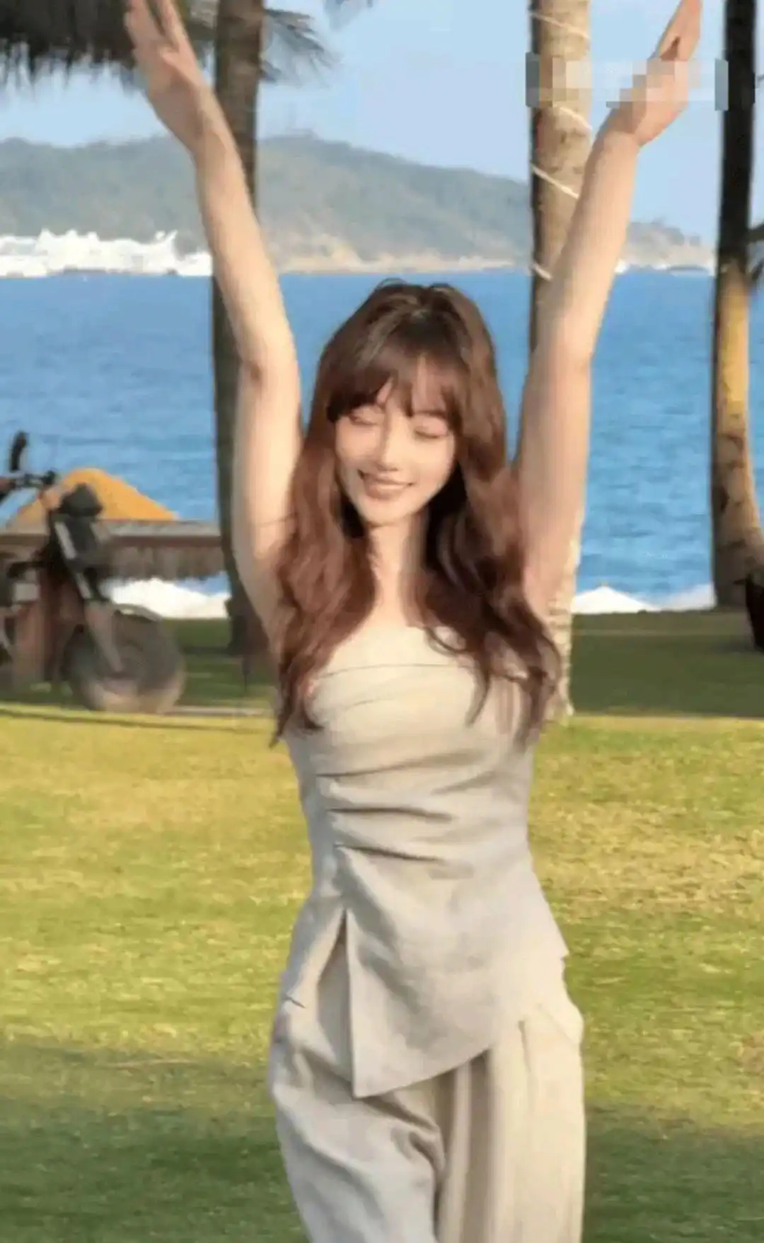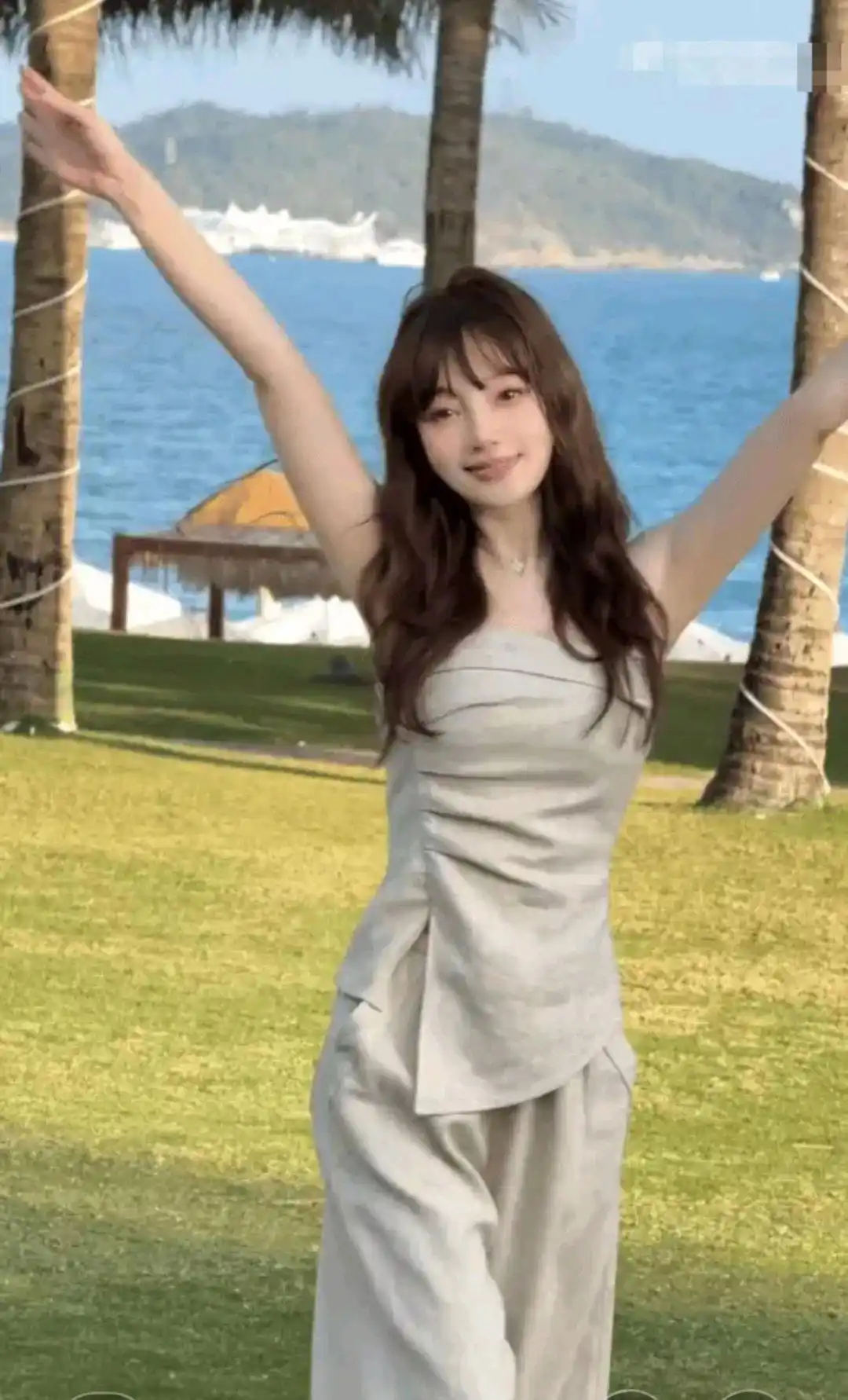 43岁李小璐春日撒欢!抹胸上衣露蛮腰,草地漫步少女感拉满