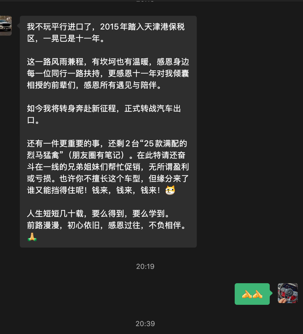又一个同行,不做平行进口了这小子,说还有俩 烈马猛禽我说给他50吧,他还不卖真是