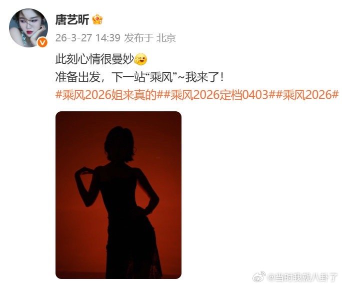 唐艺昕加盟乘风心情很曼妙 终于等到祺贵人回宫啦!!期待唐艺昕的精彩舞台乘风2026