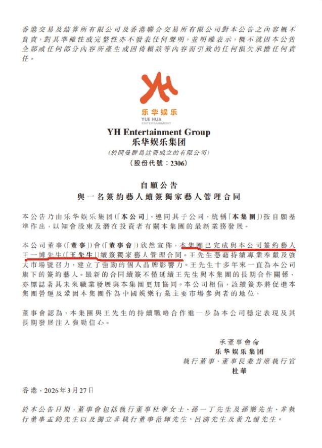 ⑤面对乐华的施压全持续下跌面对月华的施压,王一博就很聪明,以静制动,默默夯实自己的底盘。他的商务时尚国际资源,早就自主对接了。从他的新85系列icon ,个人纪录片就能看出来,乐华想弱化他,他就用实力证明,自己不可替代。⑥2026年3月,博弈进入终局 ,双方亮出底牌,也出现了很多舆论杂音,王一博被泼黑料,被迫续约的传闻漫天飞,但这根本站不住脚,要是月华真有致命黑料,根本不用耗到最后一刻才官宣,更不用主动让利。早就在博弈初期就强势碾压了,不至于全程这么被动。所有黑料都只是博弈中的舆论干扰项,经不起任何逻辑推敲,看似月华赢了,留住了核心顶流,稳住了骨架和营收,但王一博肯定也拿到了绝对自主权更高分成,以最低风险完成了平稳过度,这不是妥协,是他当下最理性的最优选择。⑦最后说句实在的,我挺淡定也挺理解他的。续约是王一博自己的事情,他选择乐华,又不是我选择乐华,我respect博哥的选择,但解析乐华,做相关内容,也是我在自己的舆论场发声,我甚至还想继续做乐华系列呢