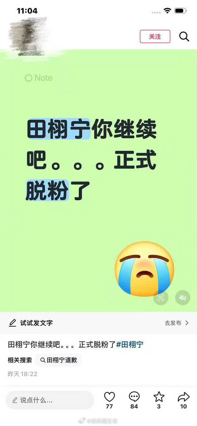 ???田栩宁粉丝表示!田栩宁你继续吧,正式脱粉了