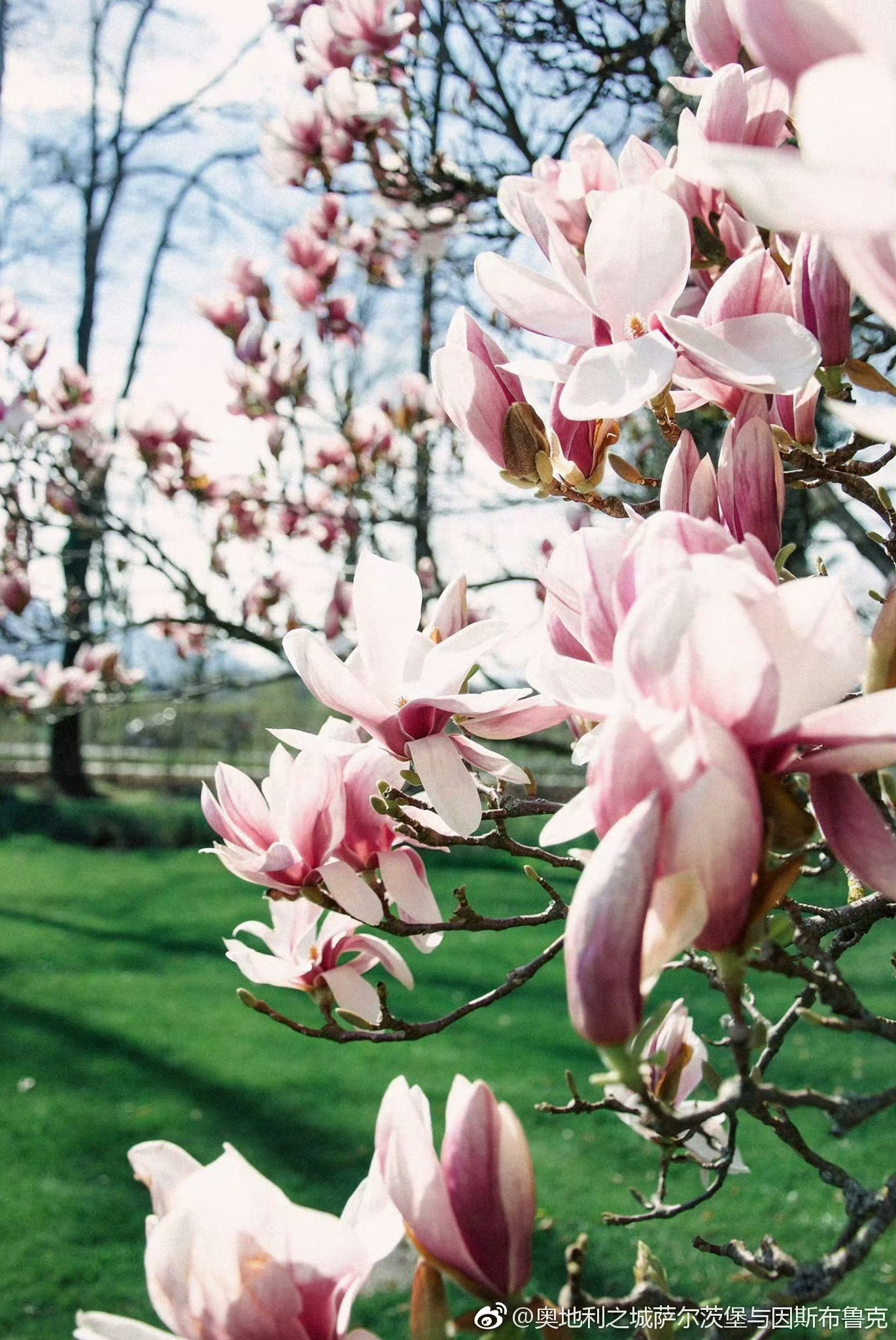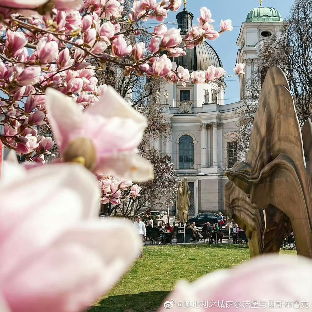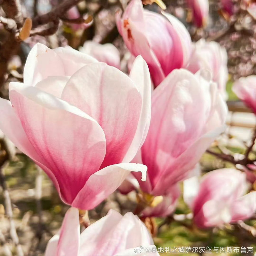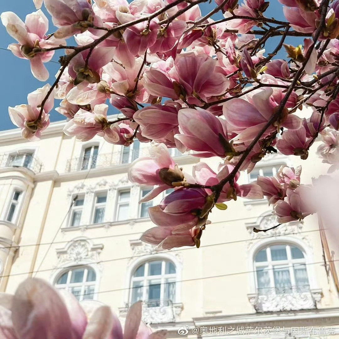 【这里是奥地利】每年3月底,那些玉兰树都竞相爆满了大朵大朵的花,白色纯洁,粉色艳丽,绽开的花蕾是枝头的大喇叭,叫嚷着春天来了,春天来了。萨尔茨堡踏春第一步,拍下玉兰盛开的热闹景象,打上一个大大的Tag。源自:奥地利之城萨尔茨堡与因斯布鲁克