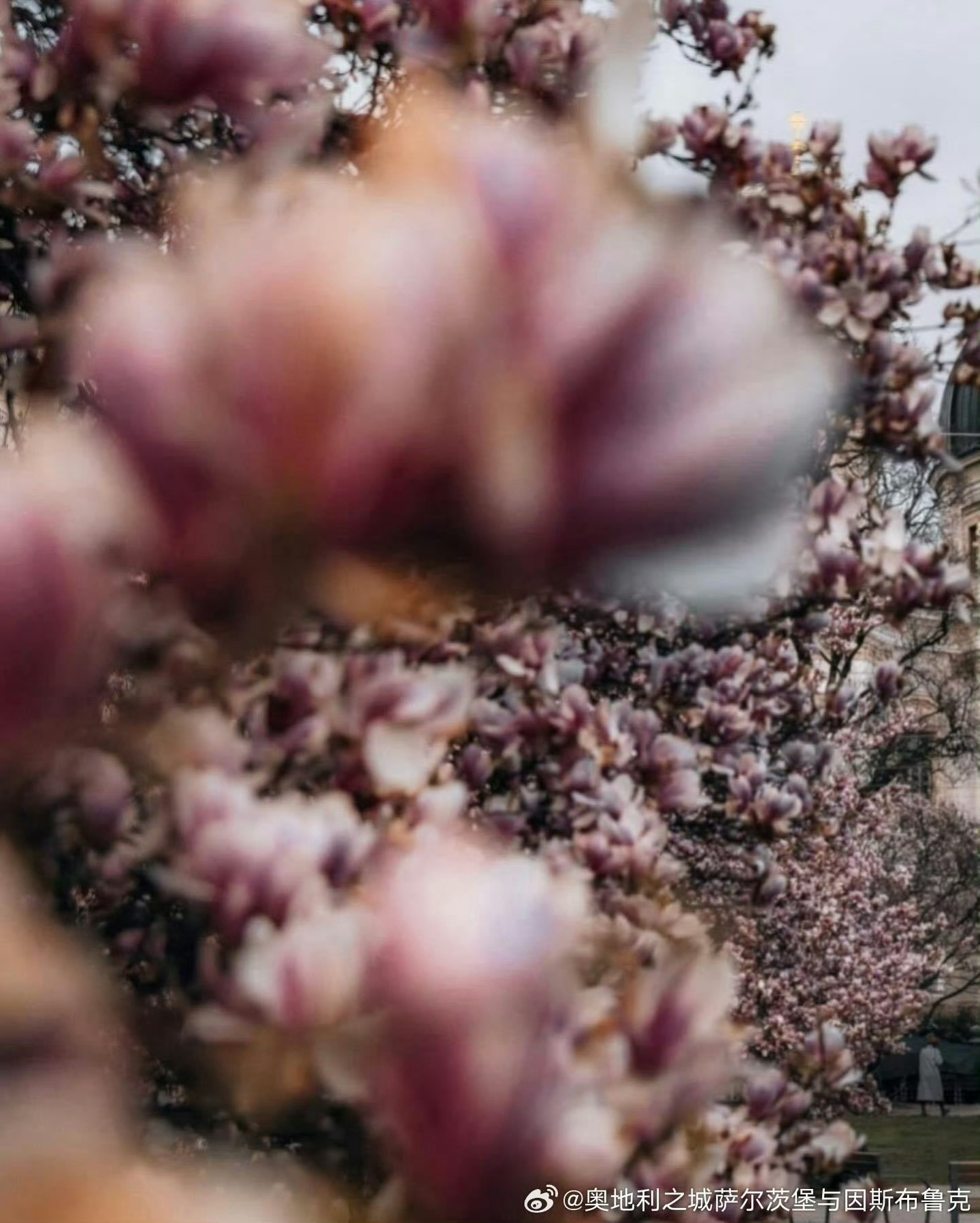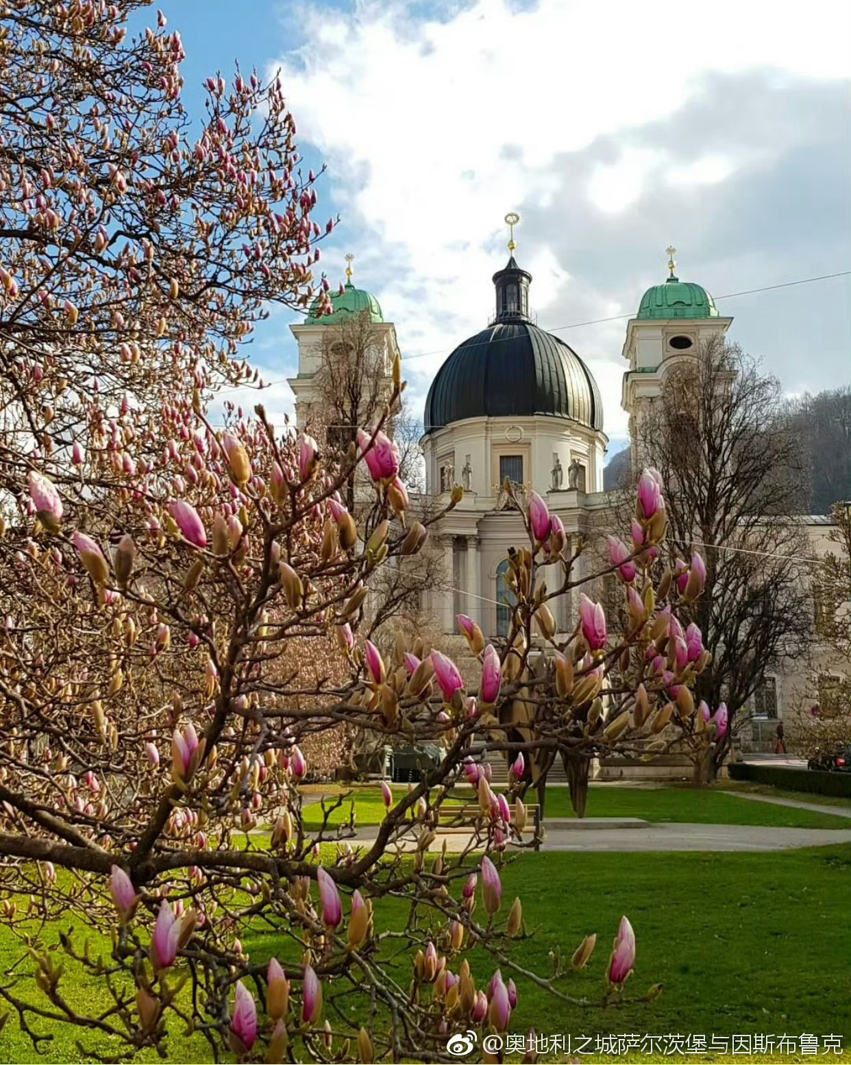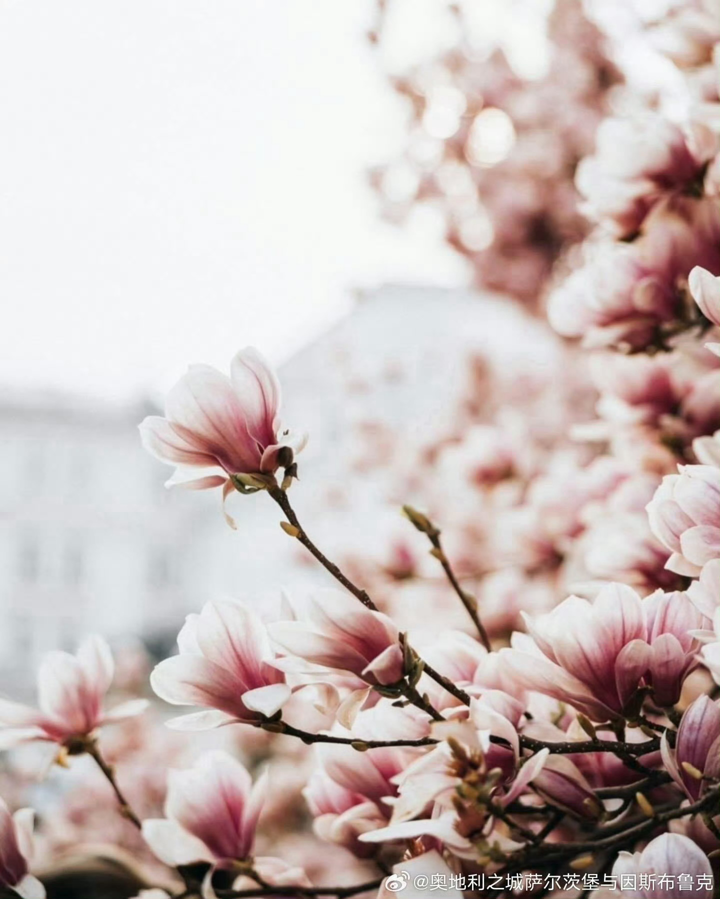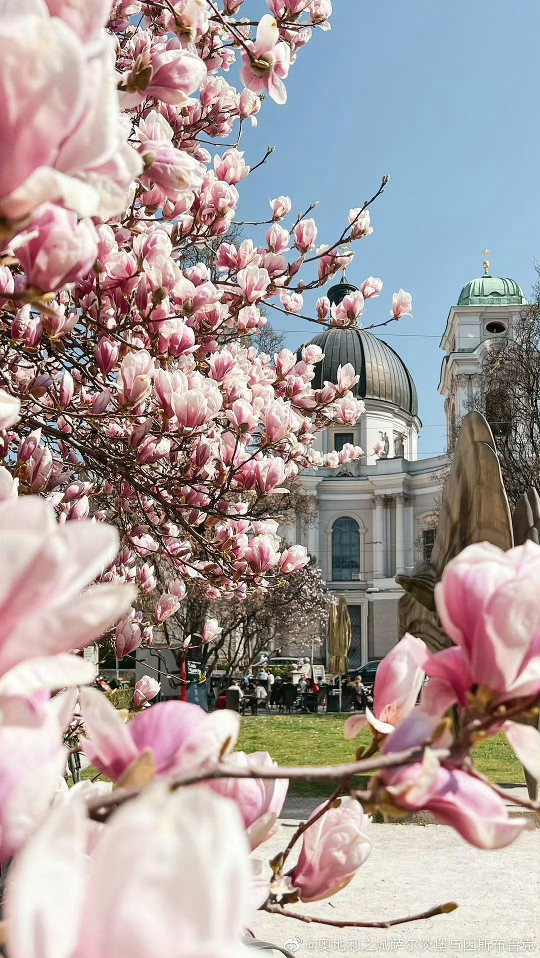 【这里是奥地利】每年3月底,那些玉兰树都竞相爆满了大朵大朵的花,白色纯洁,粉色艳丽,绽开的花蕾是枝头的大喇叭,叫嚷着春天来了,春天来了。萨尔茨堡踏春第一步,拍下玉兰盛开的热闹景象,打上一个大大的Tag。源自:奥地利之城萨尔茨堡与因斯布鲁克