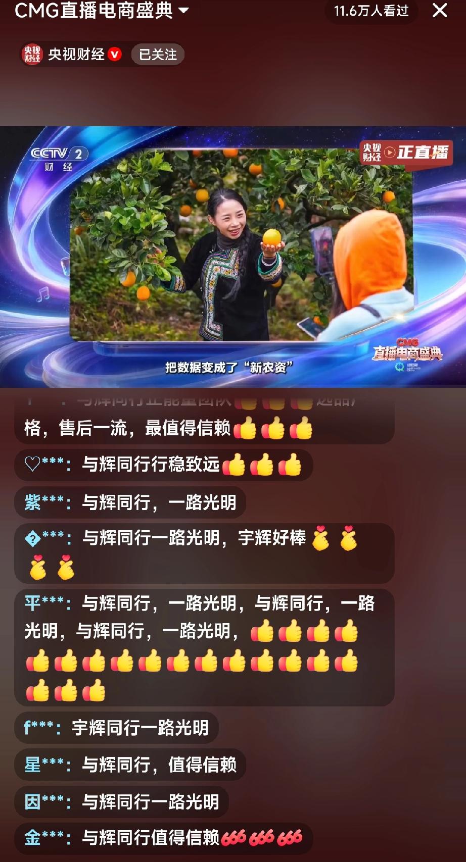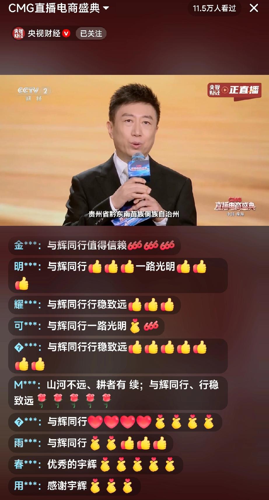 董宇辉的魅力真的不是一般的大呀!央视财经直播电商盛典,公屏上全是“与辉同行,一路光明!” “与辉同行,一路长虹!” “与辉同行,行稳致远!” …… 不仔细看,还以为这是与辉同行的直播间呢。 今晚大家都跑去看电视去了,好多朋友都说在电视上看到宇辉更帅。 董宇辉真的是走到哪里就把流量带到了哪里。 董宇辉 与辉同行
