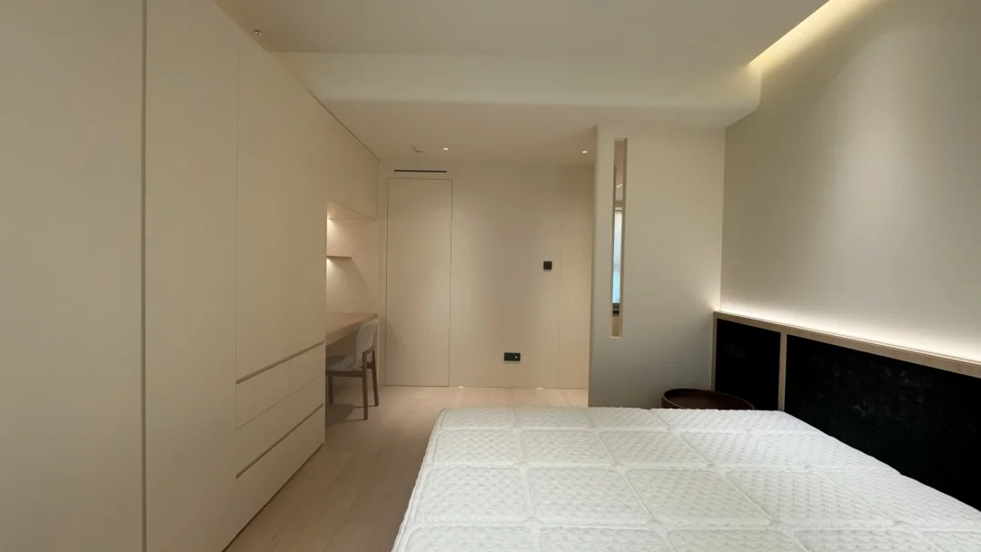 床头对调床尾做整排床尾柜,延伸梳妆台,既保留空间感又收纳翻倍!