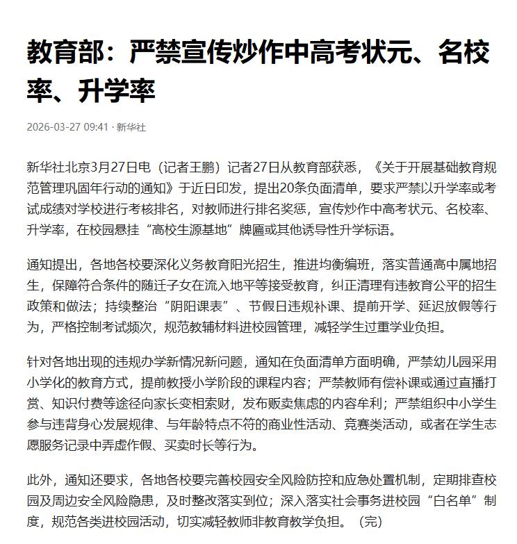 学校乐于宣传,是因为出了状元,有了好成绩,校长脸上有光,副校长、教导主任、级部主任、班主任、任课老师等等,都跟着有光。而在地方,高考就是衡量一个地区教育质量的尺子,出了状元,多出了几个清北,就意味着自己教育抓的好。 整体提升一个地区的教育水平很难,那都是“下水道”隐蔽工程,干的再多没人看见,但若出一个状元,瞬间都知道了。包括普通老百姓也是一样,不会去关心当地的本科率,也不会关心特招线和一本线二本线过了多少学生,他们只关心每年又出了几个清北,高考状元是不是在本地。 但培养一个状元,或者多出几个清北,头部985学生,相对就容易多了,在最好的学校,掐最好的学生,然后集中最优质的资源,像爱护宝宝一样,全力培养几个班的学生,那不比提升整体容易的多。 其实,高考状元本身就具有话题性,即便学校不宣传,也会在社会上广泛宣传,因为这本身就是一个热度话题,管是管不住的。