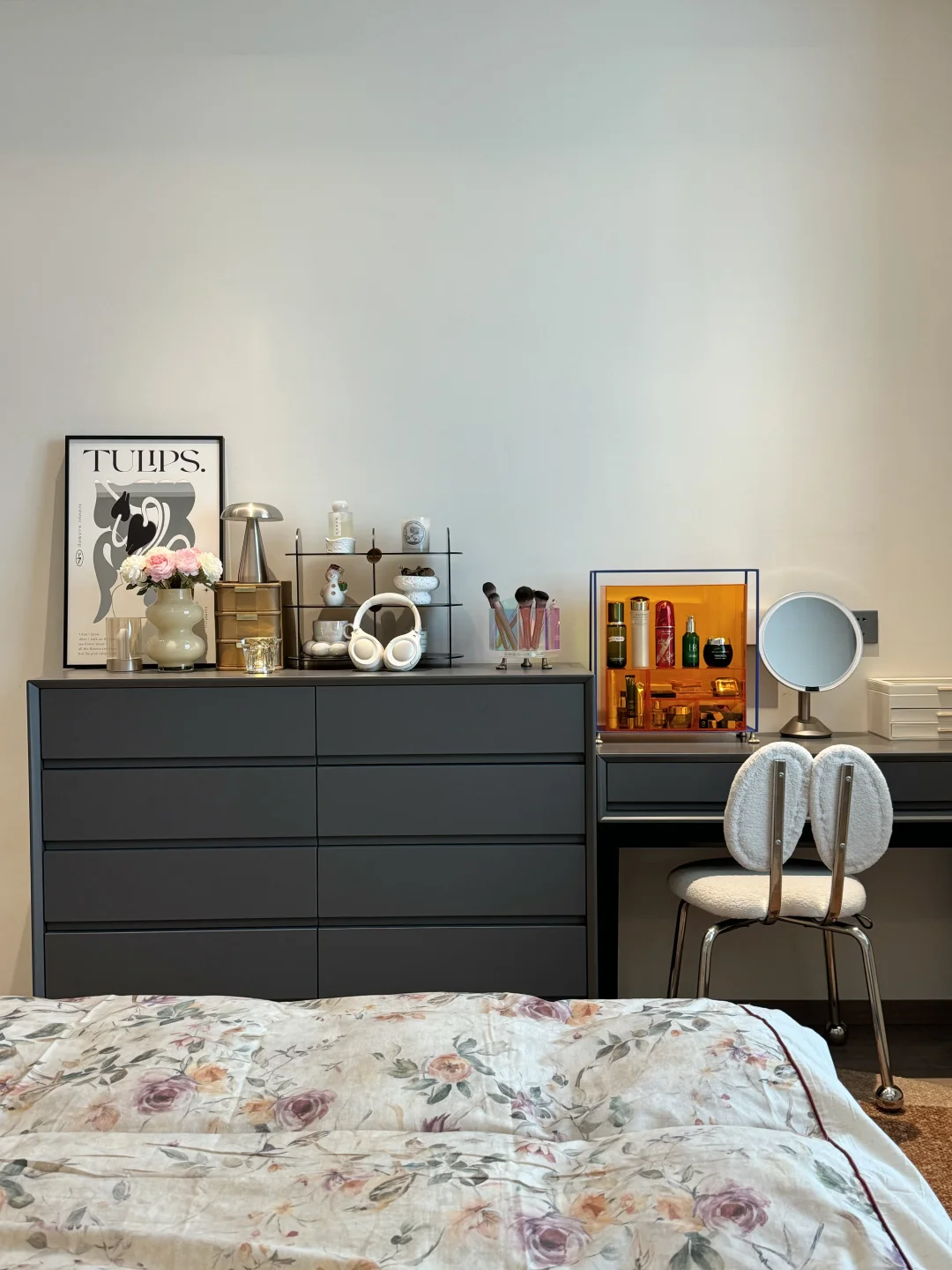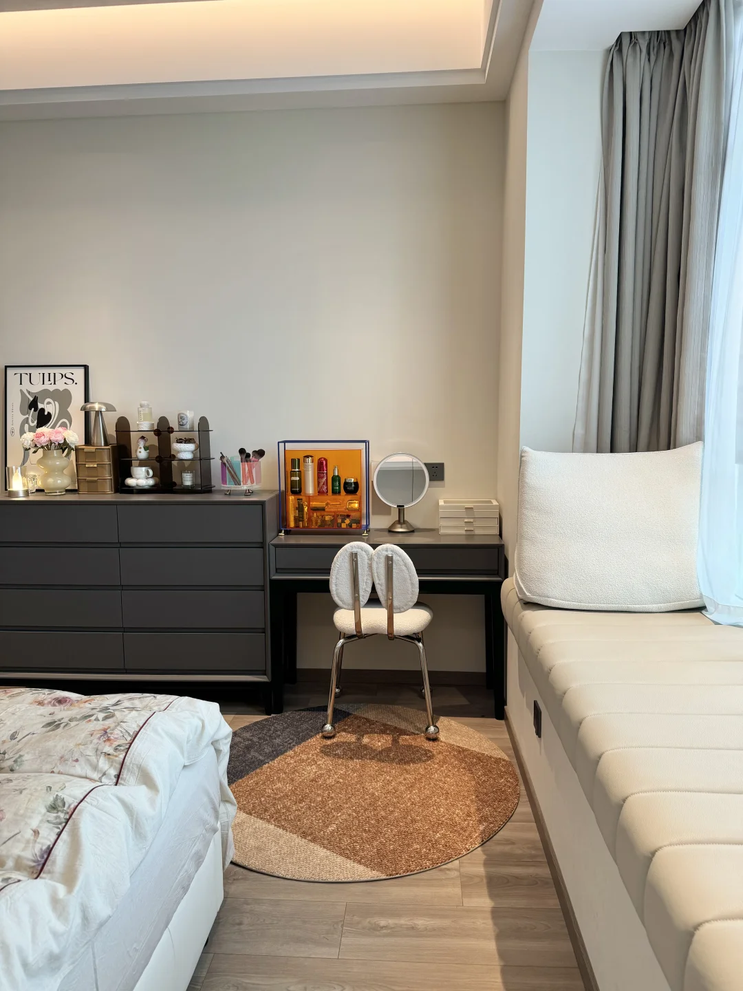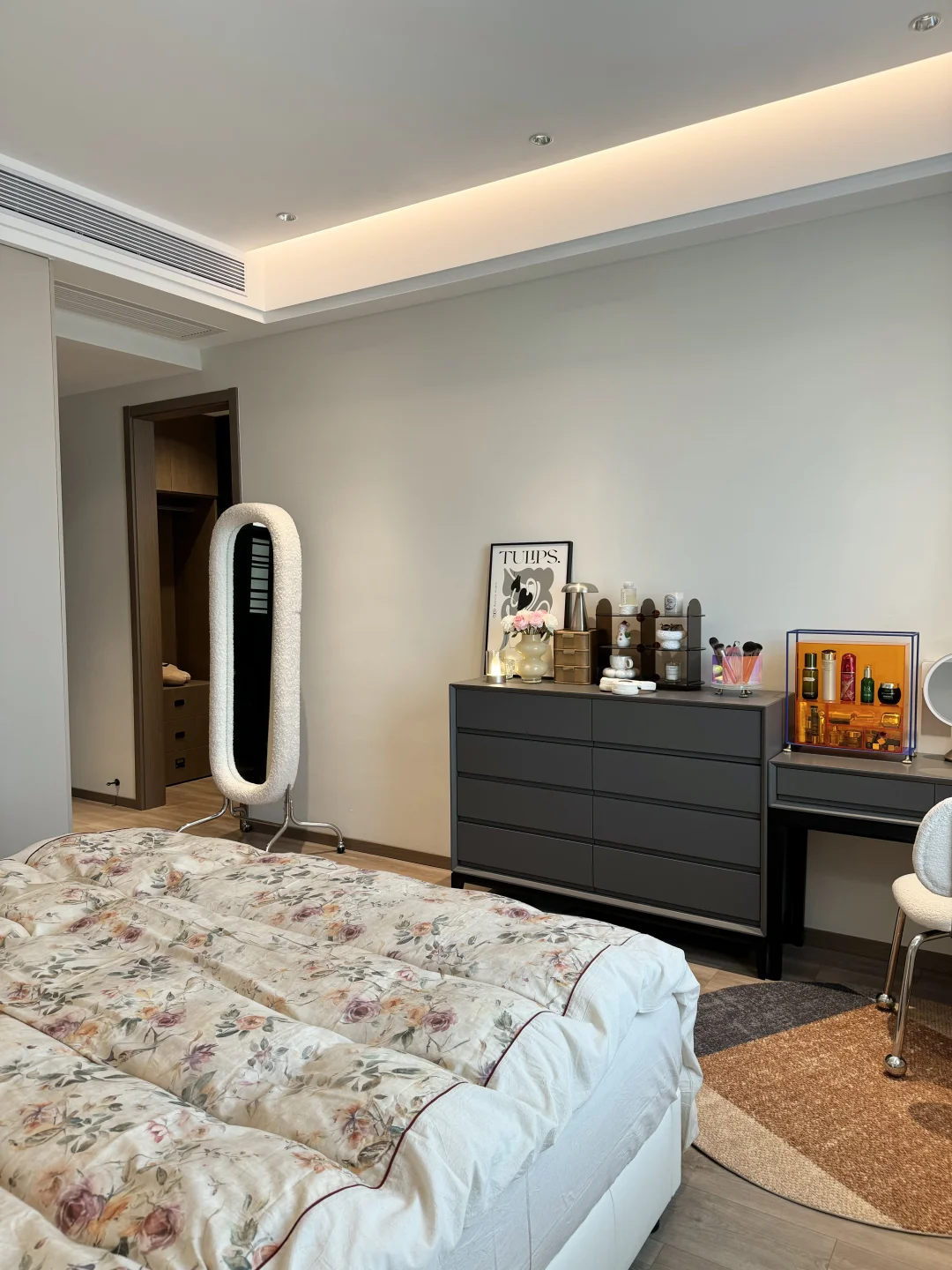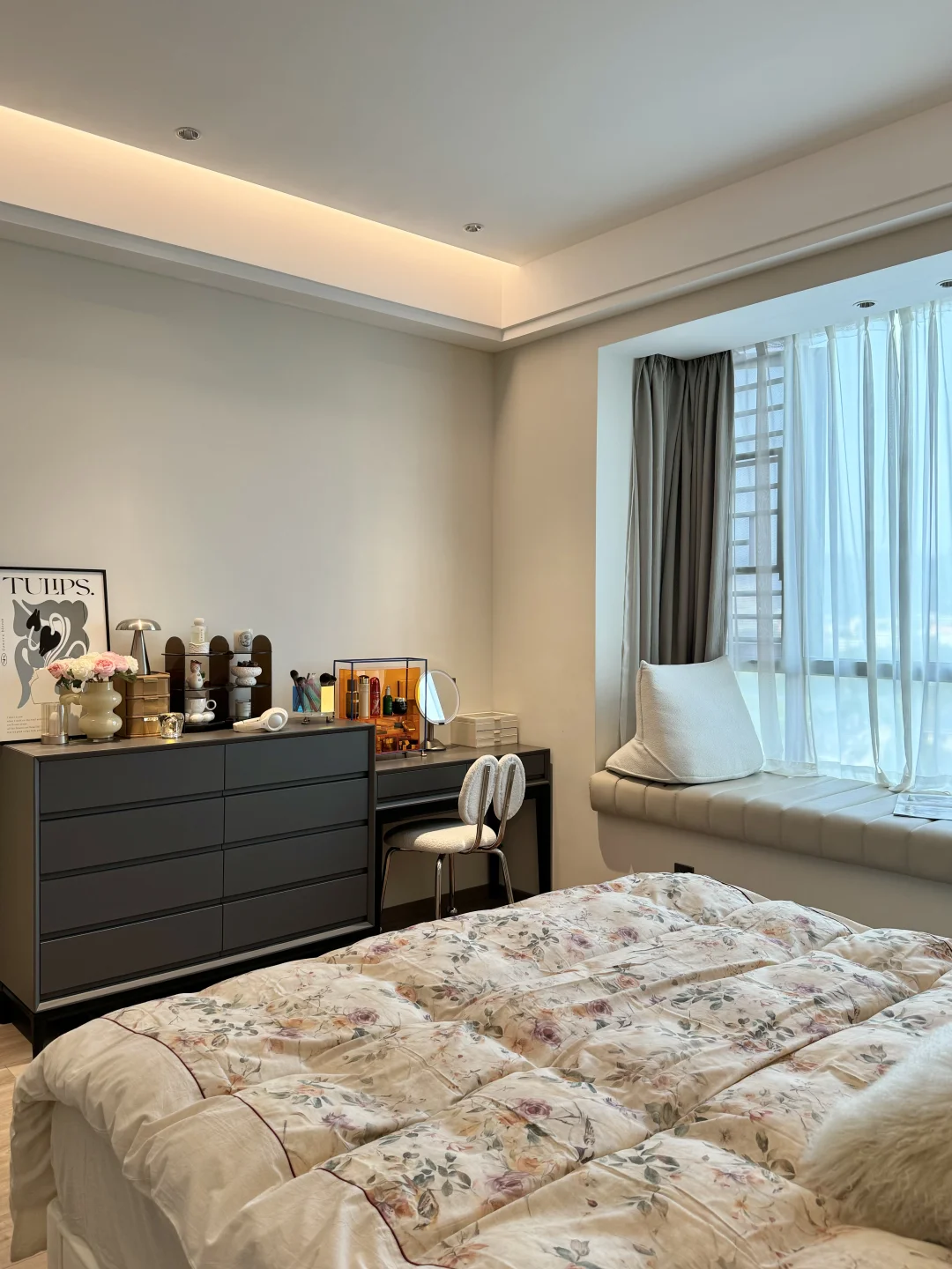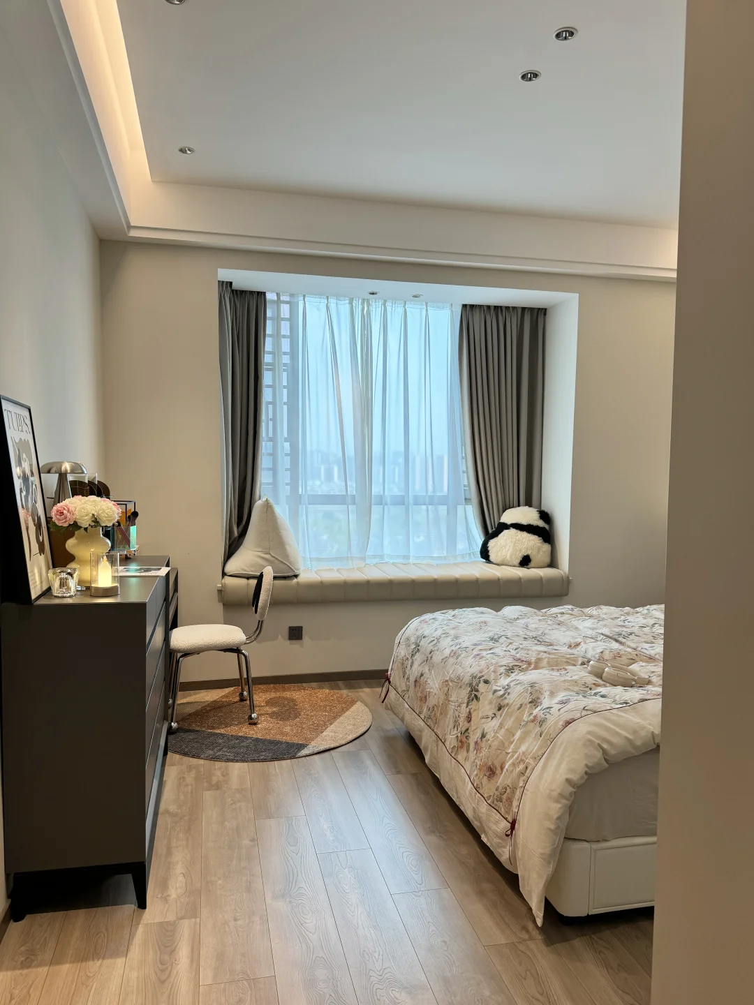 春天的卧室,铺上碎花床品,舒适的地毯,这个卧室真的好好宅,又是不想起床的一天☁️