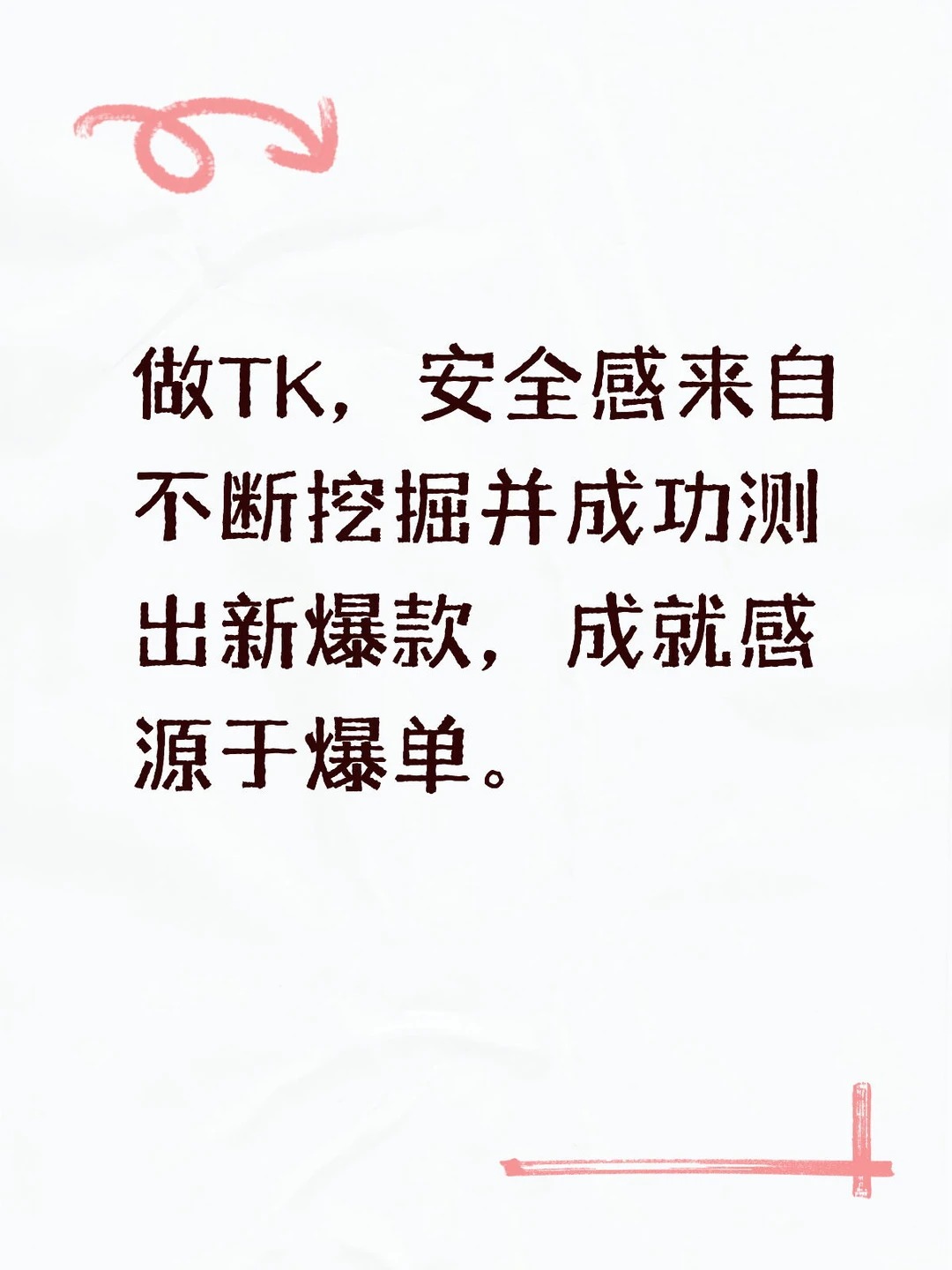 做TK,安全感来自不断挖掘并成功测出新爆款,成就感源于爆单。 只有真正实践过、经