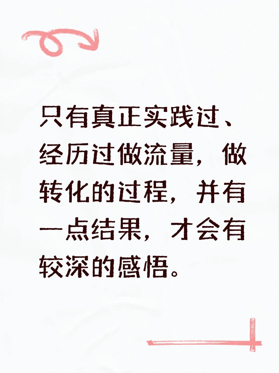 只有真正实践过、经历过做流量,做转化的过程,并有一点结果,才会有较深的感悟。老话说得好,实践出真知。