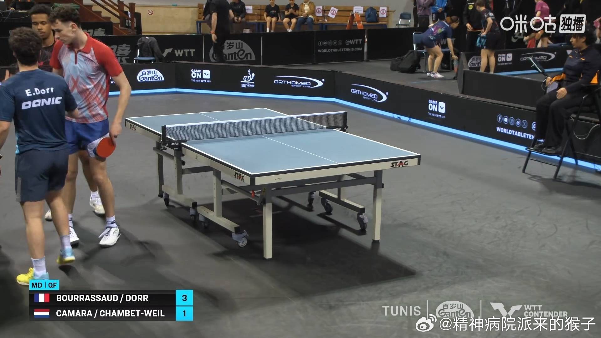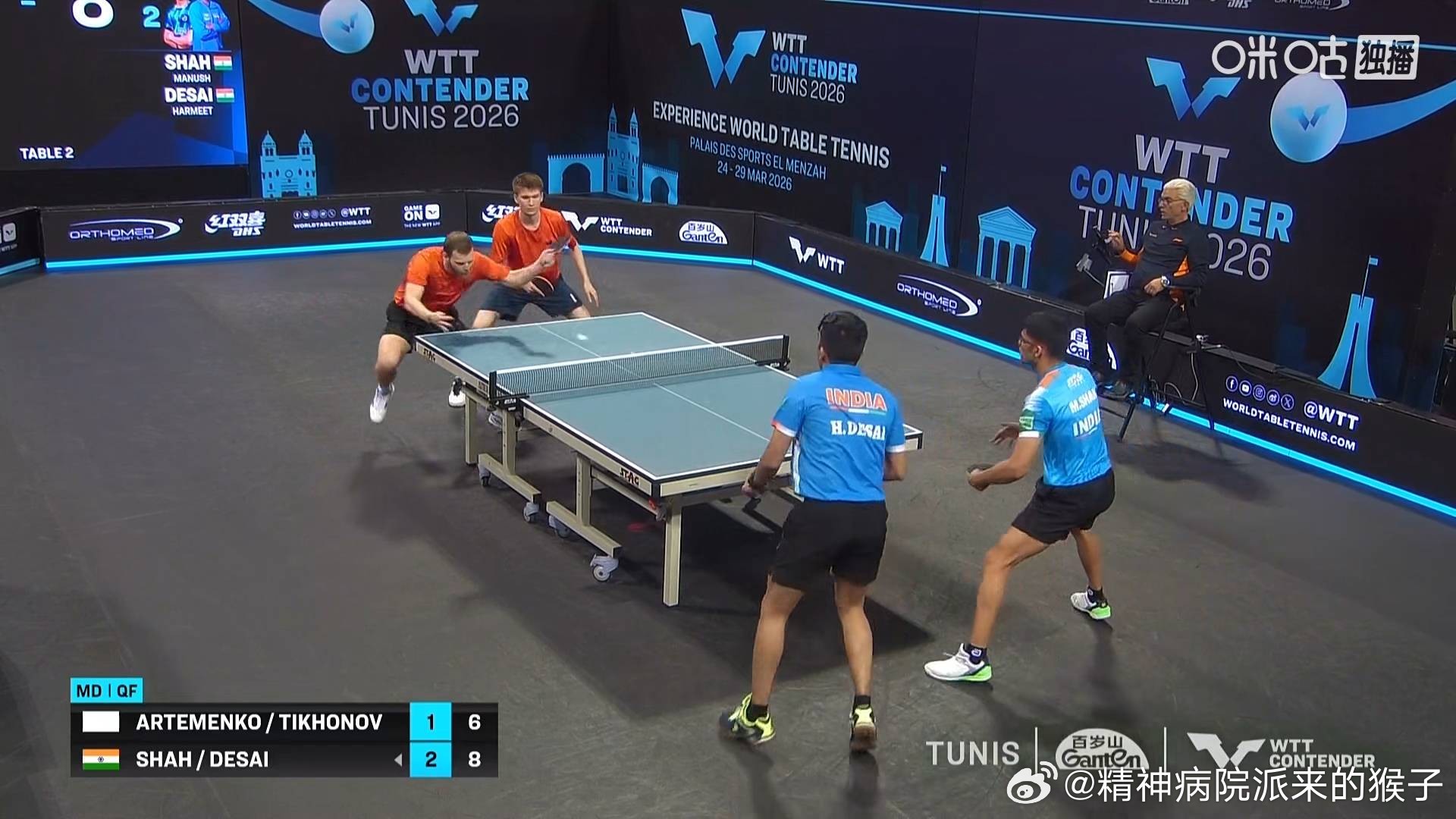 2026WTT突尼斯常规挑战赛双打¼决赛赛果:多尔布尔拉萨德3比1卡马拉维尔(7,8,-7,8)玛纳什德赛3比1阿尔捷缅科蒂霍诺夫(-3,9,11,11)亚伯拉罕潘菲洛娃3比2尼娜单晓娜(7,-8,1,-3,8)贡杜兹伊根勒3比1斯卡契柯夫西多仁科(-3,11,7,10)