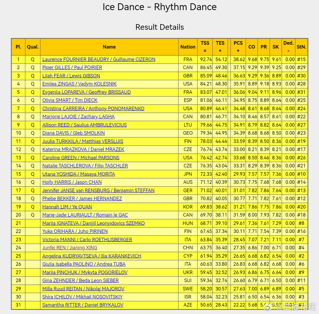 2026花样滑冰世锦赛 冰舞韵律舞结束:博得里/西泽龙排名第一,中国组合任俊霏/邢珈宁排名第二十四位无缘自由舞