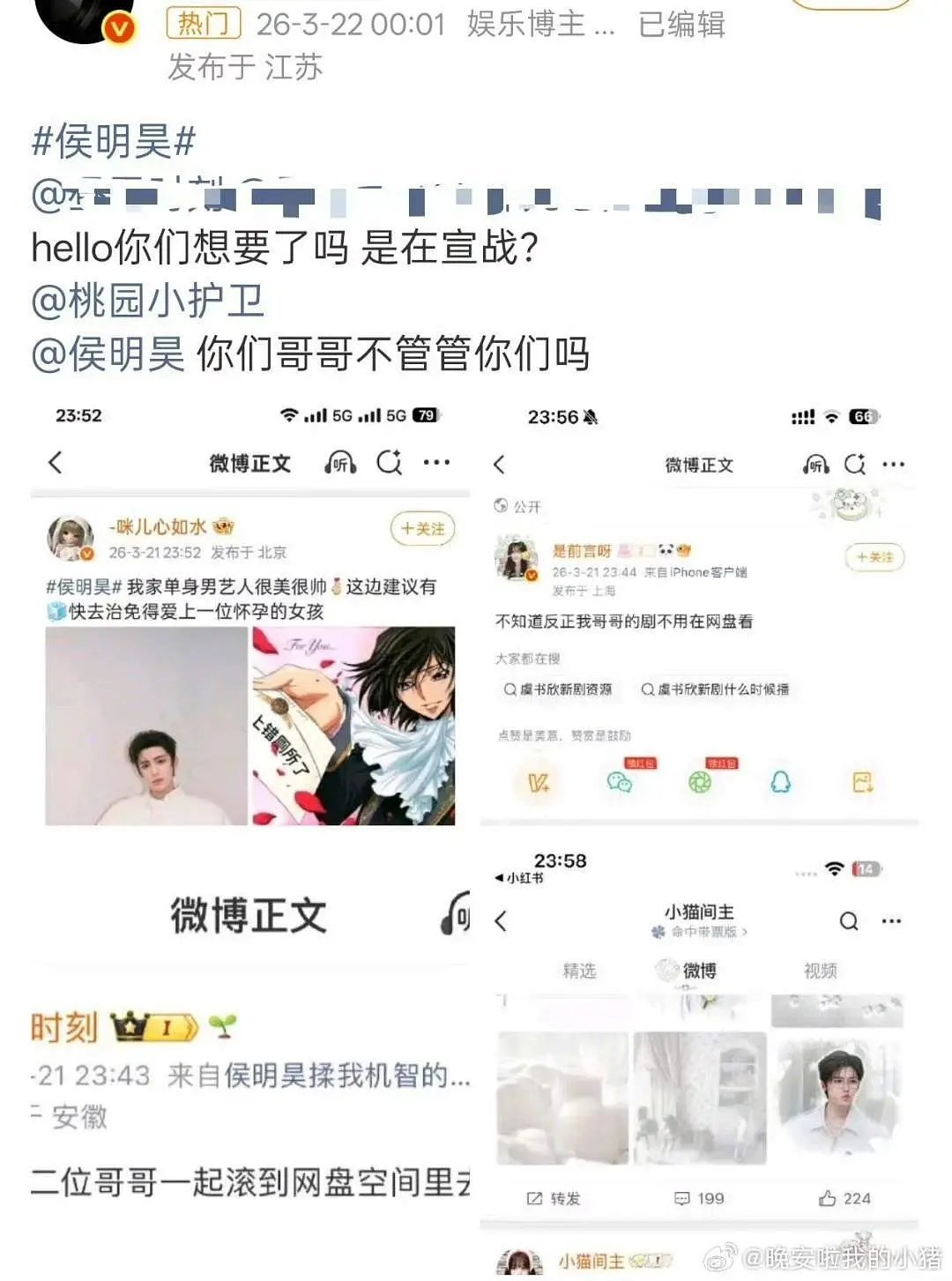 才知道侯明昊被田栩宁梓渝cpf屠了gc ,对方因为网盘播剧破防了?