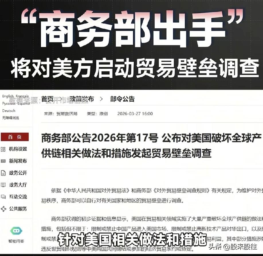 二、对美国破坏全球产供链相关做法和措施发起贸易壁垒调查。这是不得了呀!回旋镖?