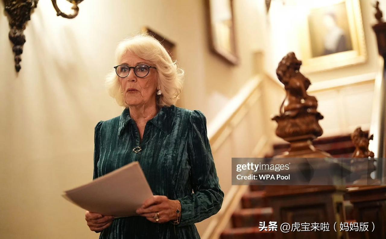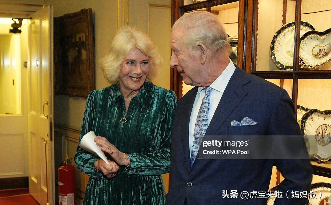 卡米拉王后在卡拉伦斯宫主持王后阅览室招待会,查尔斯国王和格罗斯特公爵夫人出席活动,为这场公益文化活动现身支持!卡米拉王后的墨绿色丝绒长裙优雅大气(仅着装本身)。尤其是国王夫妇相视而笑的一幕,夫妻二人默契十足,尽显伉俪情深!