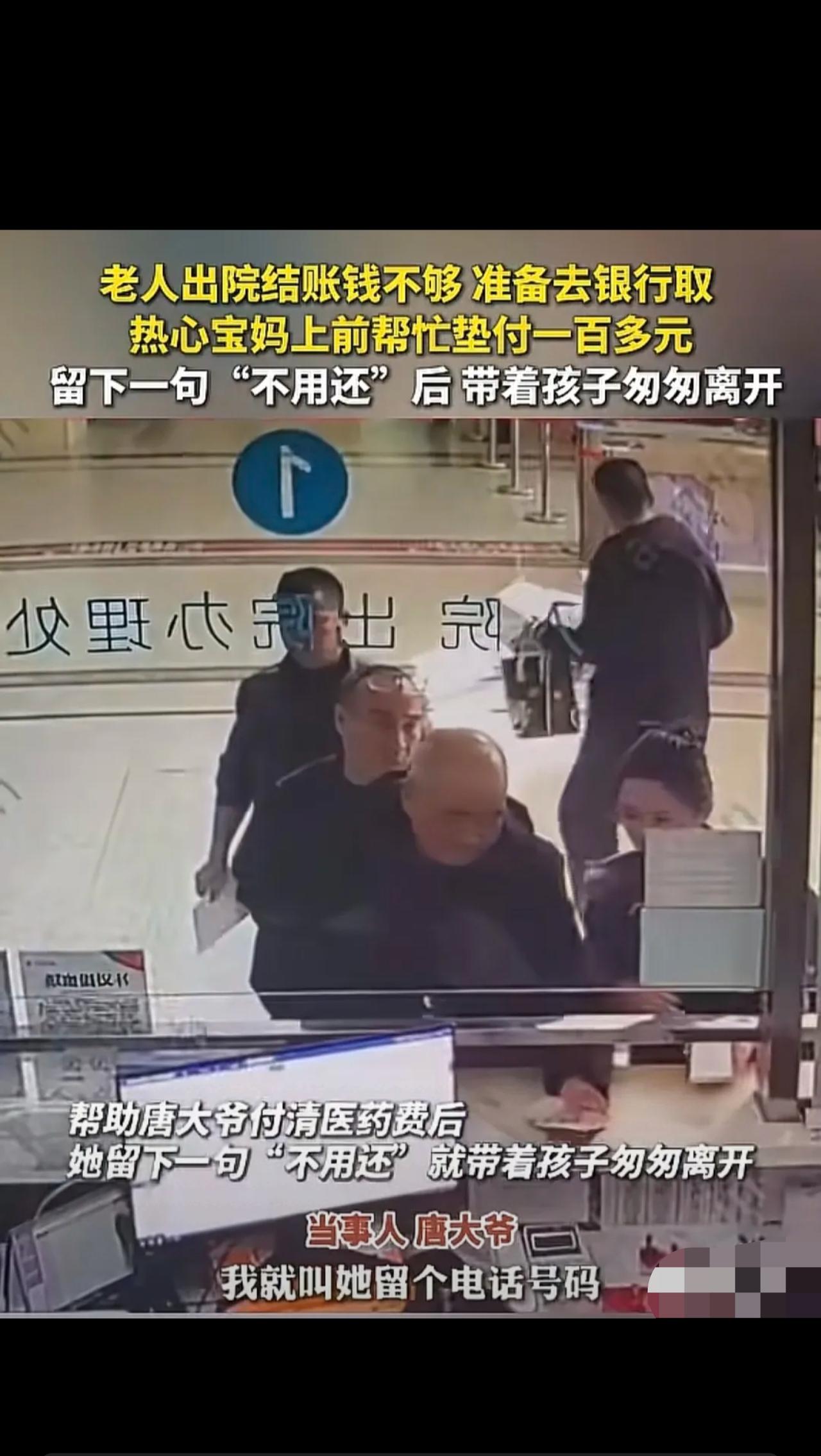 “这位宝妈火上新华社了!”浙江长兴,老人在医院办出院,医药费还差100多块,他却没钱了,正当他步履蹒跚准备去银行取钱时,一女子追上去说:大爷,你不要去了,我给你垫上。随后,女子用手机帮老人付了医药费。老人感激的让她留个电话,可女子拉起孩子,说了一句:不用还。匆匆离开了。而后,老人的一个做法也令人感动。网友:这才是双向奔赴的善良。 事情就发生在当地一家中医院,3月14号那天,70多岁的唐大爷独自一人办出院。 人上了年纪,腿脚不利索,走路都颤颤巍巍,身边连个陪床的家人都没有,本以为办完手续就能安安稳稳回家,没想到缴费时出了岔子:医药费差了120块,怎么都凑不齐。 大爷把贴身的衣兜翻了个底朝天,皱巴巴的零钱、几张旧纸币全摊在柜台上,数了一遍又一遍,还是差一大截。 后面排队办手续的人越来越多,议论声隐隐传来,老人站在窗口前,脸憋得通红,双手都在微微发抖,又着急又窘迫,恨不得找个地缝钻进去。 没办法,他只能跟工作人员小声说:“我去银行取点钱,马上回来。”说完,便佝偻着背,一步一挪地往医院外走,看着就让人心疼。 这一幕,刚好被旁边带着女儿的宝妈看在眼里。 她没丝毫犹豫,立马牵着孩子追了上去,轻轻拉住老人的胳膊,温声说道:“大爷,您别跑了,银行离这儿好几站路,您来回折腾太受罪,这点钱我帮您付了,不值当您再跑一趟!” 唐大爷当场就懵了,看着眼前陌生的宝妈,半天说不出话,反应过来后连连道谢,非要留对方的手机号、加微信,说回家就把钱转过来,绝不能让好心人白花钱。 宝妈笑着摇了摇头,扶着老人回到缴费窗口,当场扫码付了120块尾款,全程干脆又利落。 等老人攥着出院单,再次想追问宝妈的姓名、住址时,她只是摸了摸身边女儿的头,说了句“叔,真不用还,举手之劳”,就牵着孩子快步离开了,连个回头的身影都没多留。 本以为这就是一次不留名的善举,可老人的执念,却让这份温暖彻底升华了! 唐大爷顺利出院后,心里一直放不下这件事,吃不好睡不好,总觉得欠了人家天大的人情。回家后第一时间拉着孙子的手,反复叮嘱:“咱必须找到这个好心人,钱要一分不少还回去,还要当面给人鞠个躬道谢,人家帮咱是情分,咱不能忘恩!” 接下来几天,老人不顾腿脚疼痛,天天让孙子陪着去医院,挨个问护士、问收费窗口的工作人员,就想找到这位好心宝妈,完成自己的心愿。 一个默默行善,不求分毫回报;一个铭记恩情,执着寻人道谢。 网友们看完直接炸了,评论区全是走心的感慨,每一条都说到心坎里: ✅ 有同款经历的网友破防:“看哭了!我爸当年住院差200块,也是一个陌生姐姐帮垫的,我们找了好久没找到,这份恩情记一辈子,现在我遇到难处的人,都会伸手帮一把!” ✅ 有现实感慨的网友直言:“真的太难得!现在医院里差钱的老人不少,可很多人不敢帮,就怕被讹、怕说不清,这位宝妈敢伸手,真的太勇敢了!” ✅ 有夸赞老人的网友点赞:“老人也太实在了!现在好多人觉得别人帮忙是应该的,能这么执着还钱道谢的,太少了,好人遇上知恩图报的人,才是真的圆满!” ✅ 还有暖心网友留言:“100多块不多,但这份毫不犹豫的善意,比一万块都珍贵!宝妈教给孩子的,是最好的家教!” 作为看完整个事件的人,我真的感触特别深: 我们总说世道冷漠,其实不是没有善良,而是很多人被顾虑困住了手脚,怕惹麻烦、怕被误会,宁愿袖手旁观也不敢伸手。 可这位宝妈不一样,她眼里看到的是老人的无助,心里想的是帮人脱困,没有算计、没有犹豫,纯粹就是见不得老人受苦,这份朴素的善意,才最打动人。 而且最珍贵的是,这份善良没有被辜负!宝妈施恩不图报,老人感恩不忘本,双向奔赴的善意,才是这世间最温暖的光。 顺带跟大家提一句,从法律上来说,宝妈帮老人垫付医药费,属于无因管理,老人本身有义务偿还,宝妈说不用还,是自愿放弃权利,法律永远站在好人这边,绝不会让好心人吃亏! 其实人间的温暖,从来都藏在这些小事里。 不用做惊天动地的大事,只是举手之劳的帮助,只是铭记于心的感恩,就足以融化所有冷漠。 为这位善良的宝妈点赞,为这位知恩图报的老人点赞! 愿我们都能守住心底的善意,遇到难处时有人伸手,帮了别人后被人铭记,这才是最美好的人间! 大家遇到这种事,会主动帮老人一把吗?评论区聊聊你的想法👇
