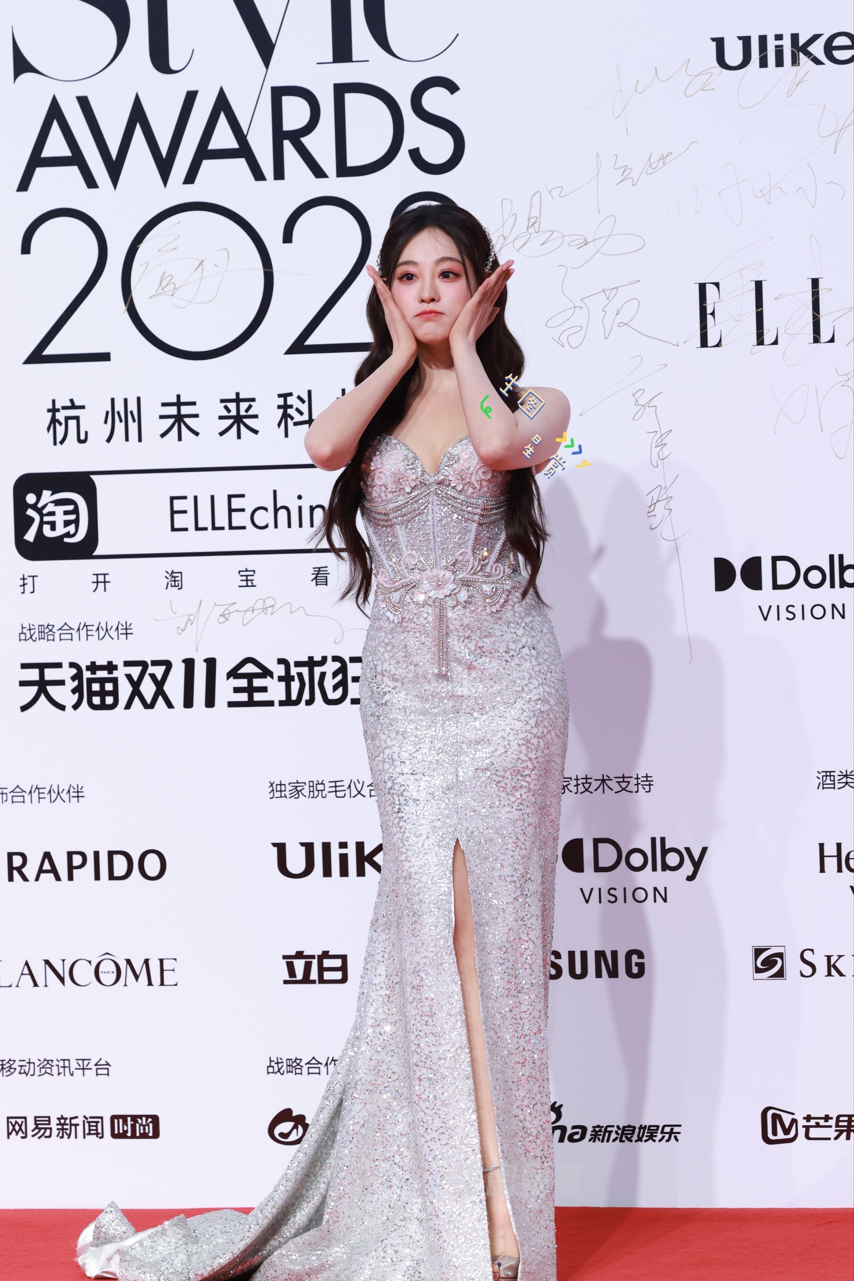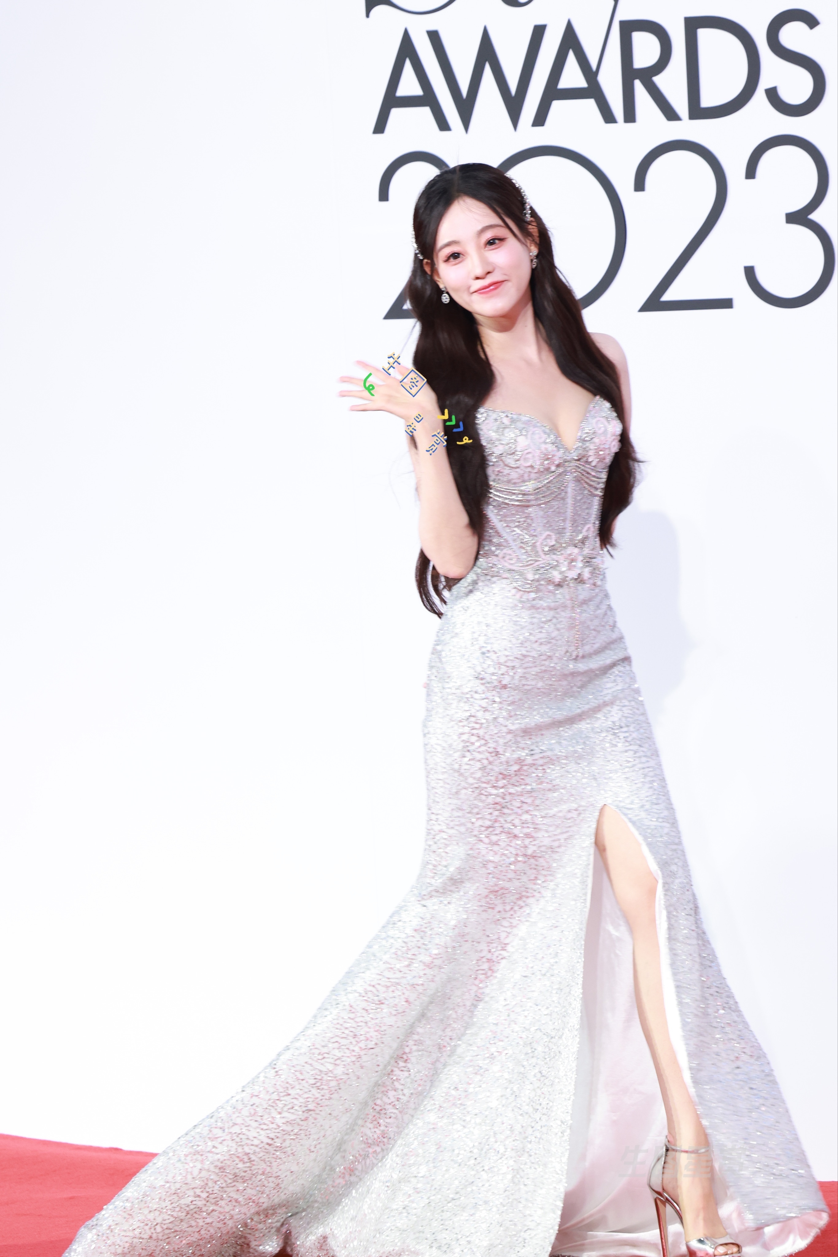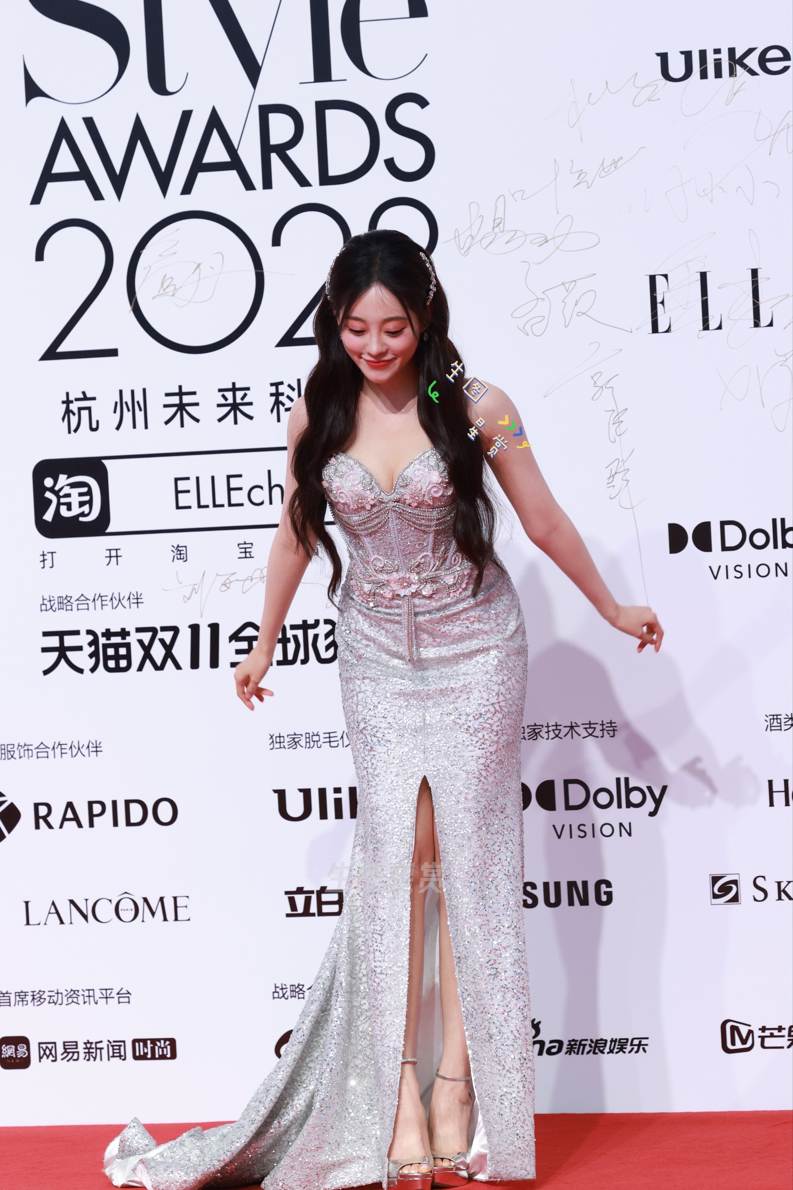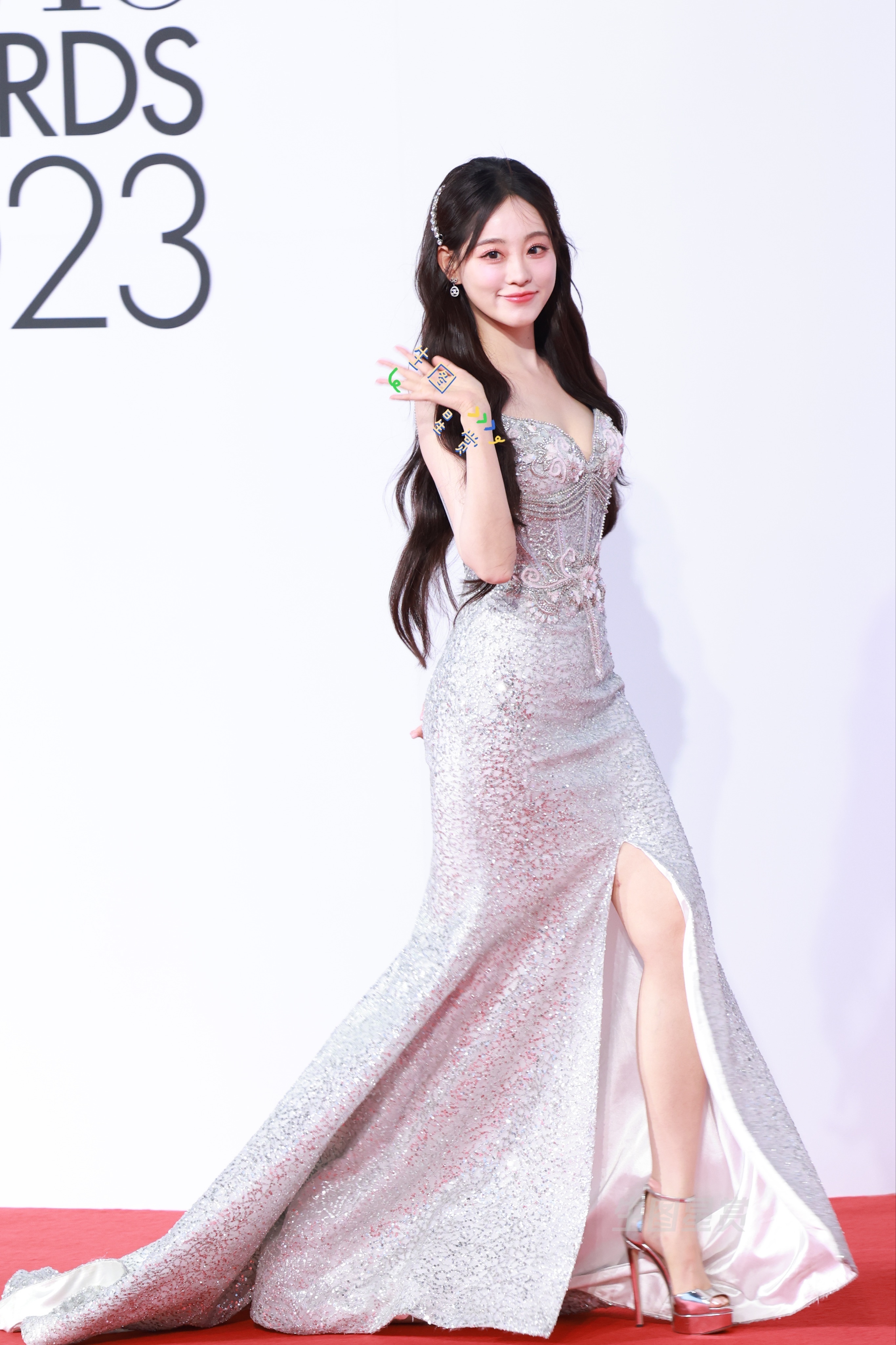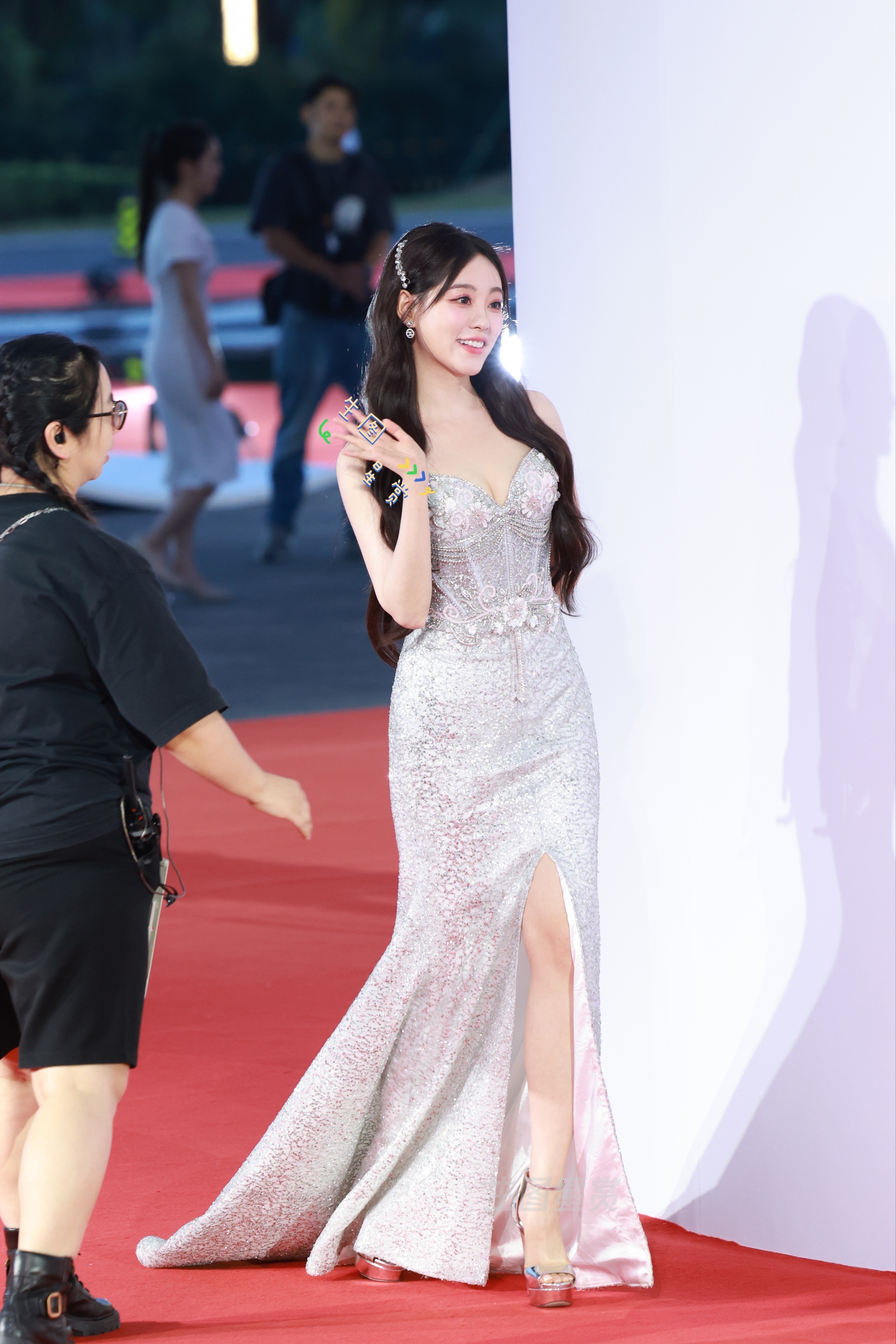 祝绪丹 虞书欣 祝祝抹胸高开叉长裙配亮银超高鱼嘴细高跟