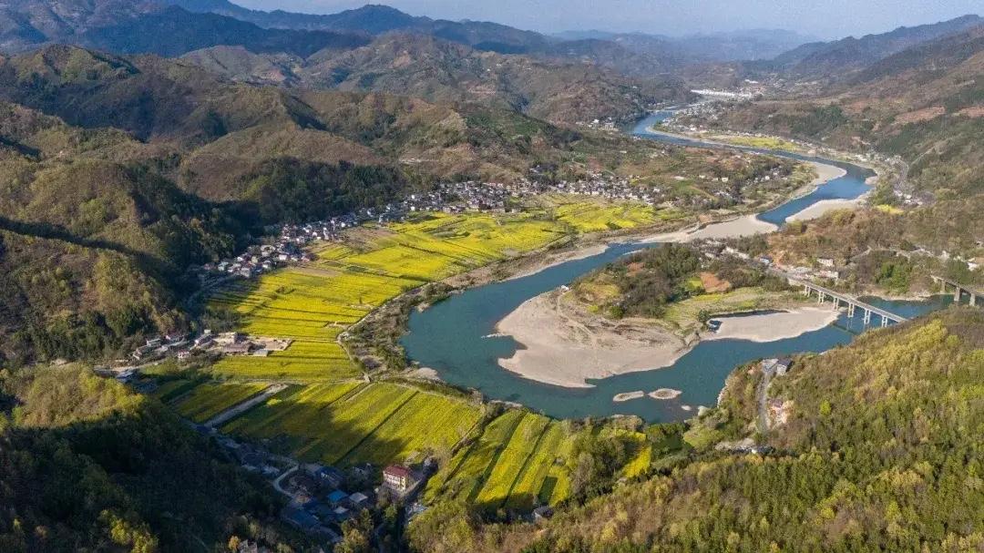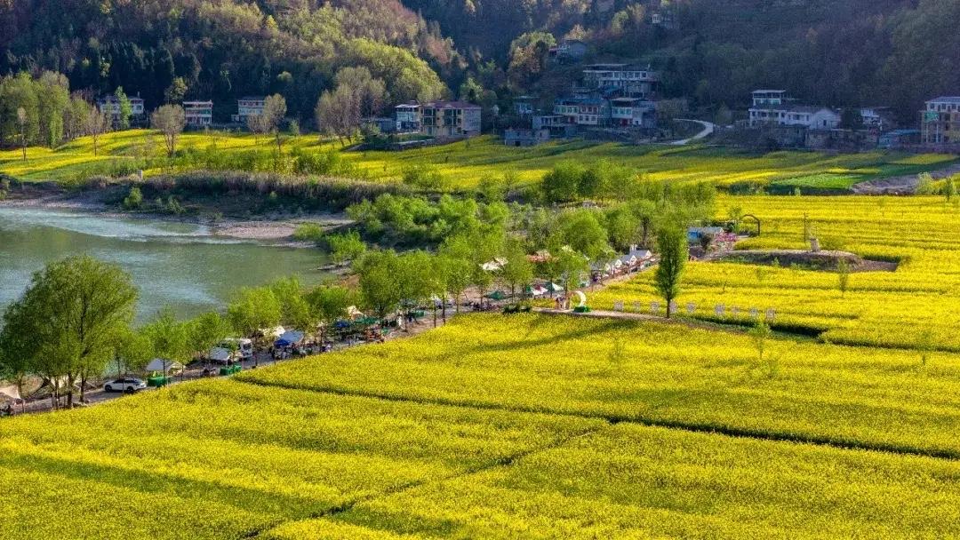 【汉中一处独特自然景观:嘉陵江“几”字形湾开满千亩油菜花】在汉中宁强燕子砭镇岛湾村,嘉陵江流经此处时呈“几”字形蜿蜒流淌,形成了独特的“嘉陵江第一湾”景观。这里也是宁强县海拔最低点,海拔约530米。每年春季,盛开的千亩油菜花绵延于江畔,与周边民居相映成趣,宛如一幅天然的油画。目前,2026年“自在宁强·遇见燕子砭”油菜花旅游季正在汉中市宁强县燕子砭镇岛湾村火热进行中。岛湾村可拍摄“嘉陵江第一湾”与花海同框的画面,每日采莲船、舞狮表演持续至4月12日,建议上午抵达,先赏花海,后观演出。趁着春光正好,不妨走进宁强燕子砭,赴一场与“嘉陵江第一湾”金色花海的春日之约。