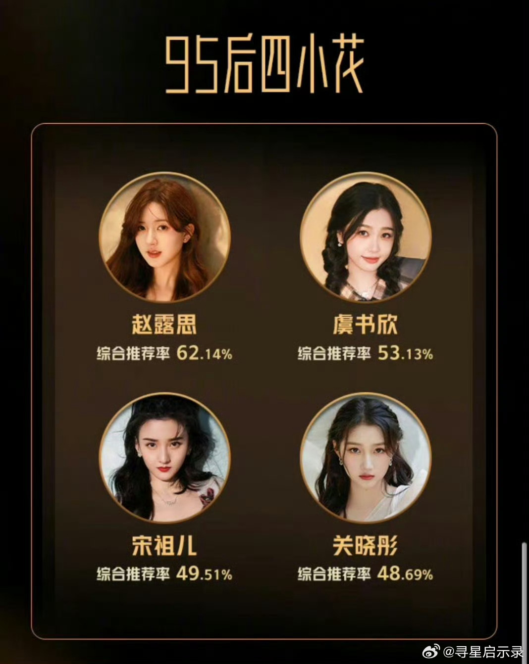 95花关系图鉴微博认证的95四小花:赵露思、虞书欣、宋祖儿、关晓彤