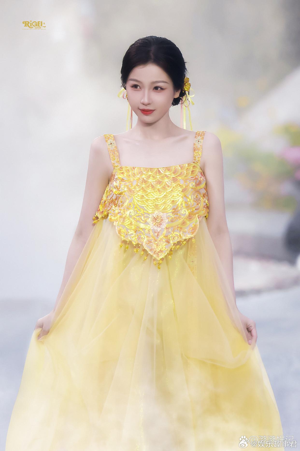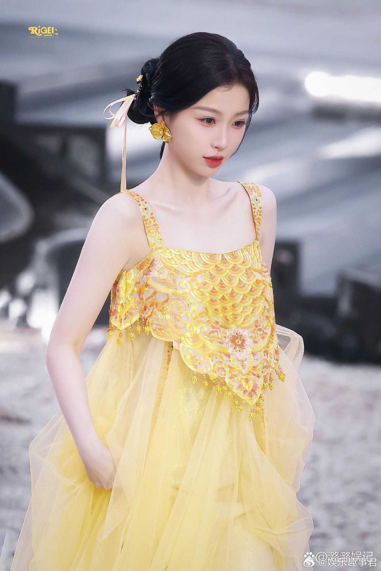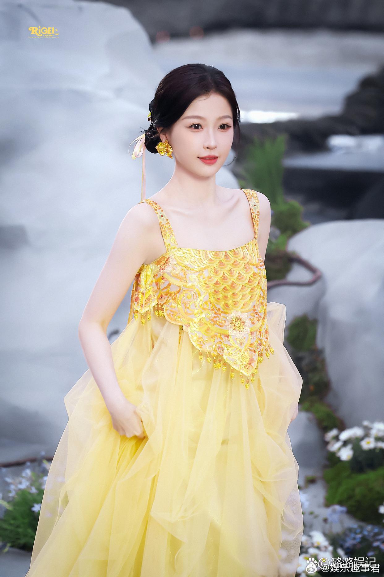 虞书欣参加红毯活动,现场的她好灵动啊,纯生图状态都这么好,一袭明亮的鹅黄色礼裙加上随风飘动的发带 ,