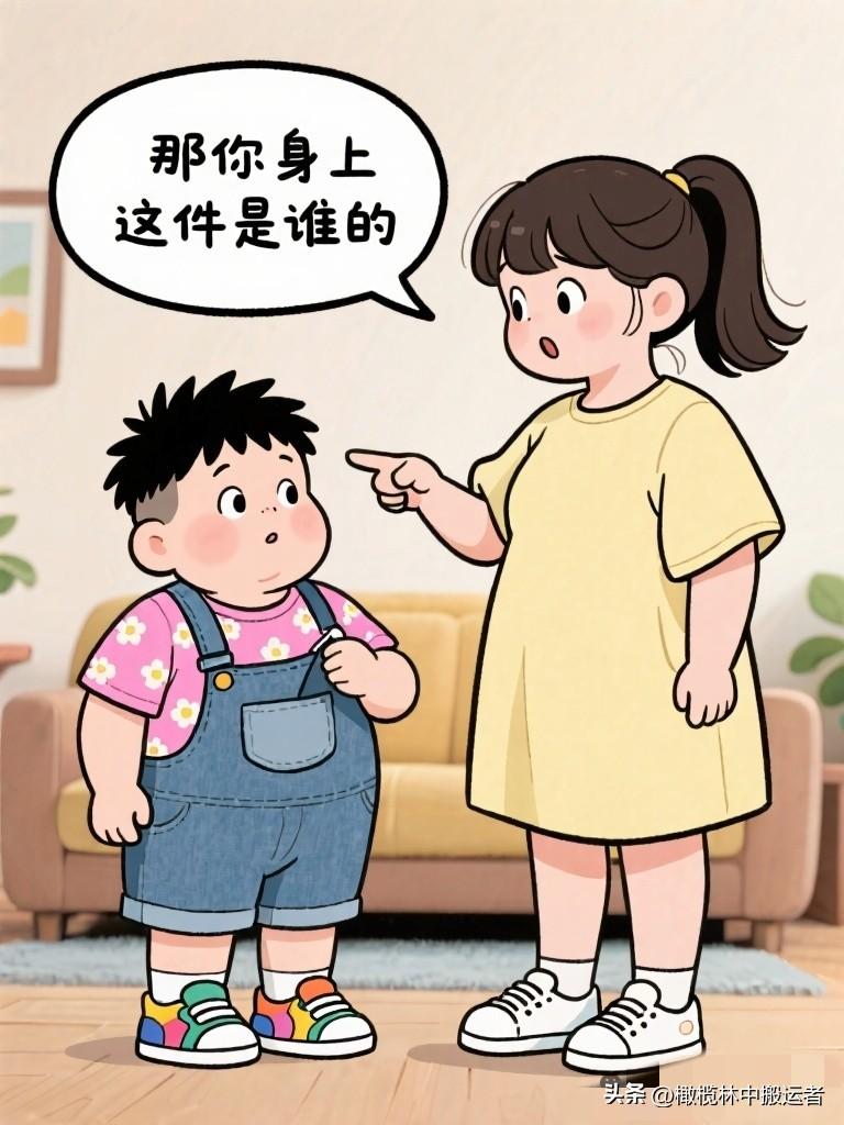 趣味漫画:姐姐:你是不是又穿我衣服了?弟弟:没有啊!姐姐:那你身上这件是谁的?弟弟低头看了看:这不是我的吗?姐姐……