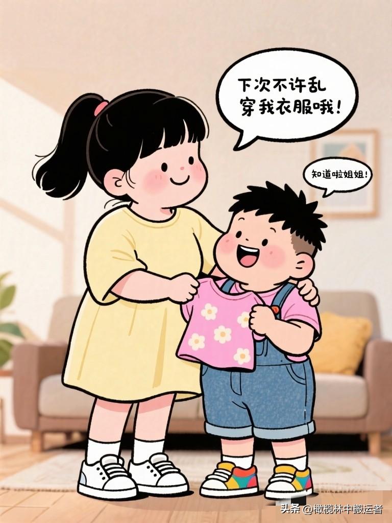 趣味漫画:姐姐:你是不是又穿我衣服了?弟弟:没有啊!姐姐:那你身上这件是谁的?弟