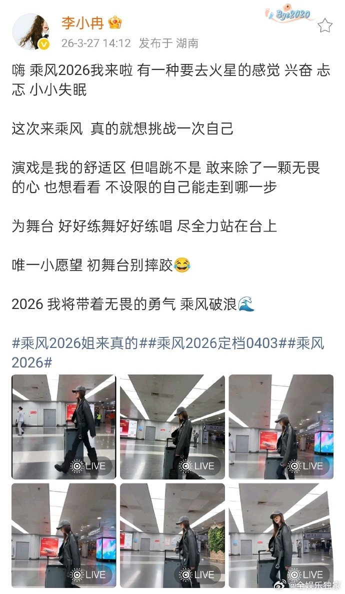 李小冉乘风2026我来啦 人生就是不断突破自我、改变选择,李小冉勇敢踏上乘风舞台