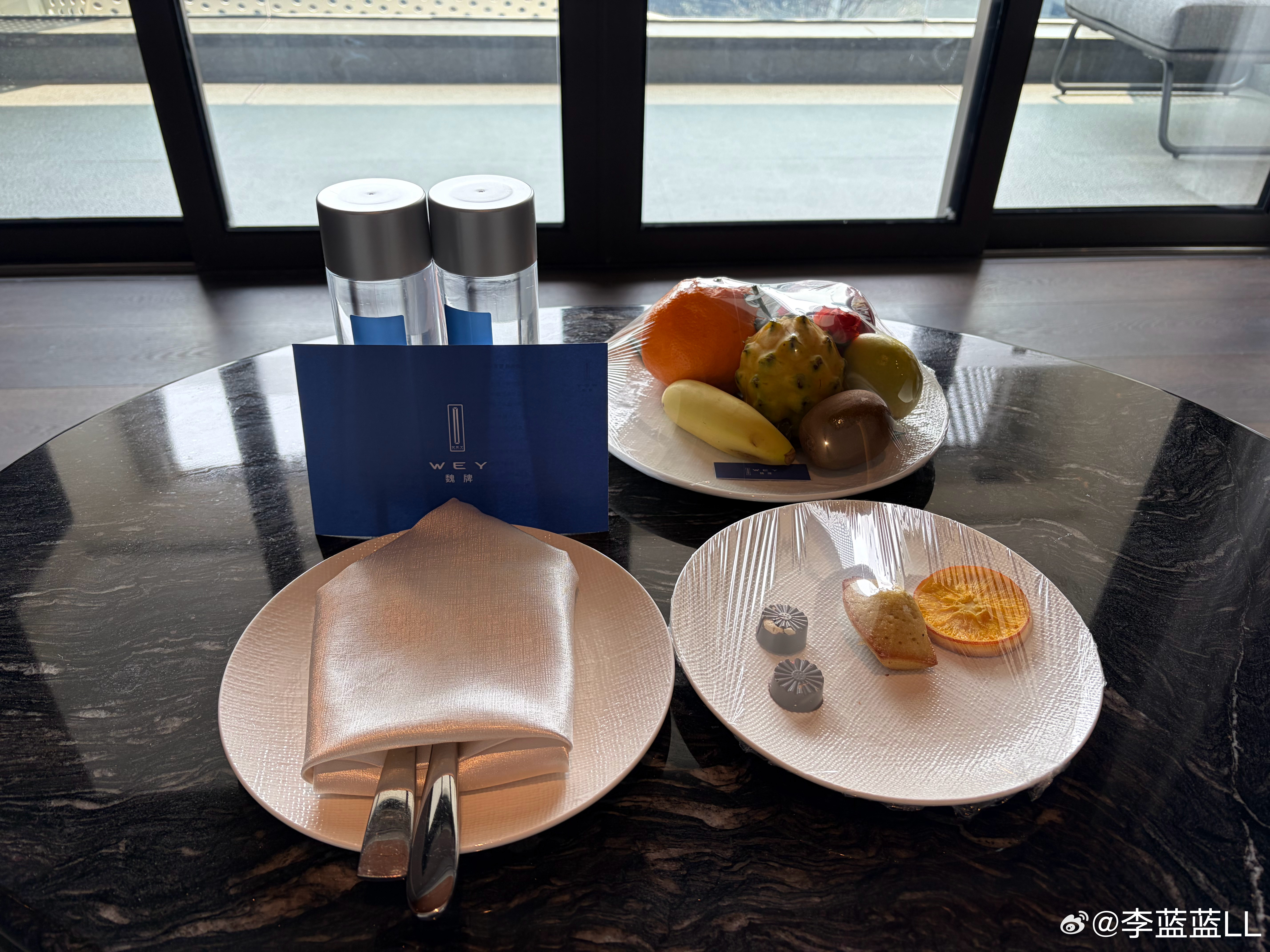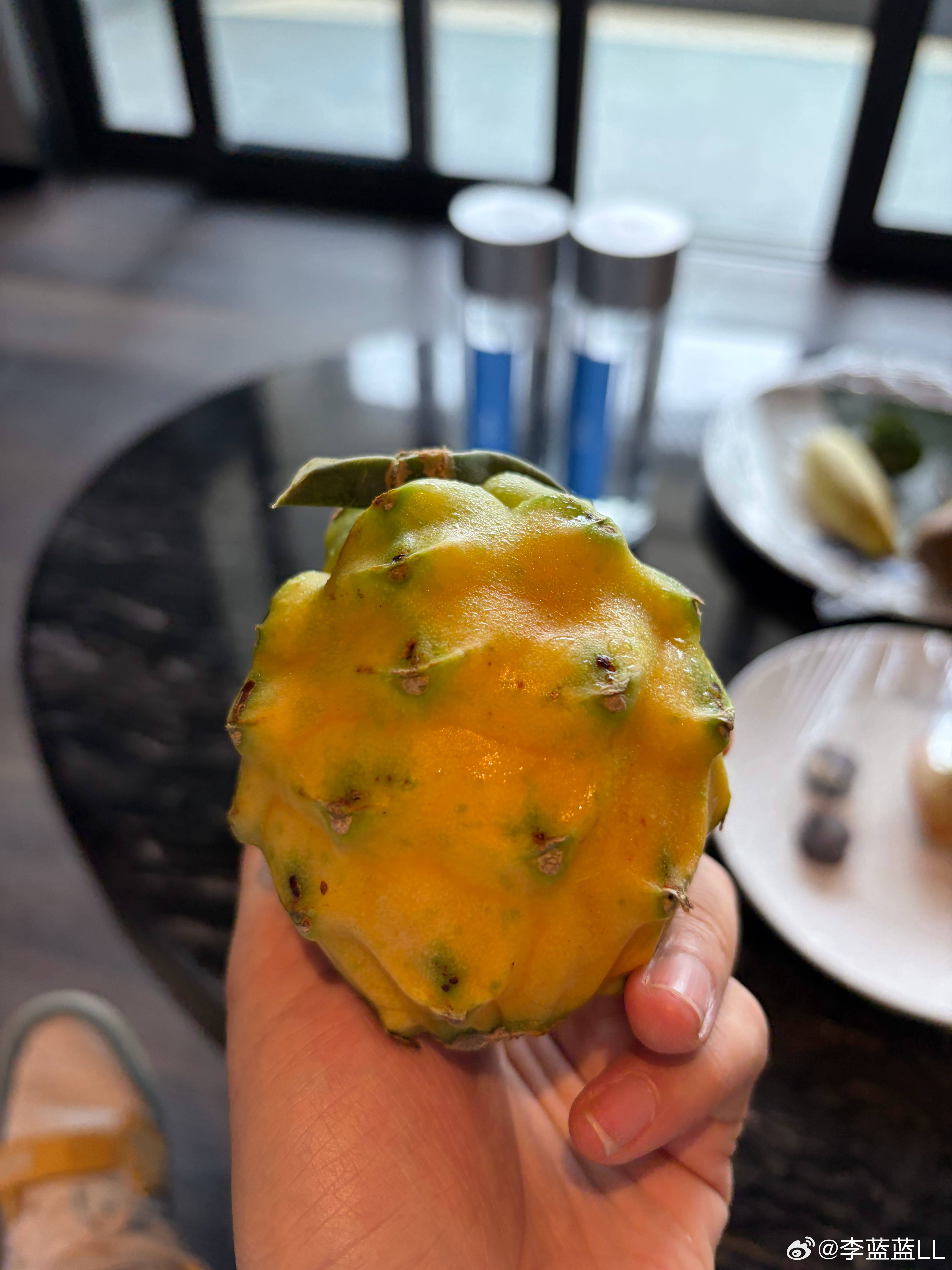 魏牌的果盘还挺精致。你们知道这个黄色的水果叫什么吗?看着有点像火龙果?