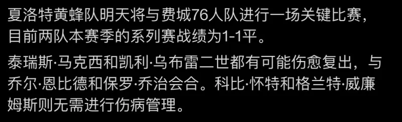明日伤病报告出炉!科比·怀特和格兰特·威廉姆斯均未列入伤病名单 泰瑞斯·马克西和凯利·乌布雷都有可能伤愈复出!