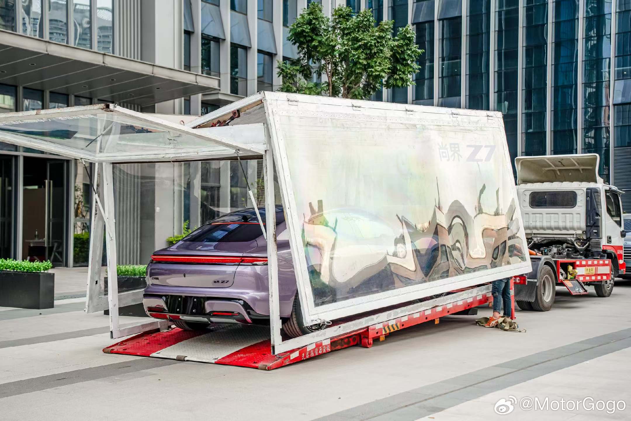 尚界Z7 今天应该是都到店了,前两天看销售发的是这样的方式拉到店里,先做一回显眼包。