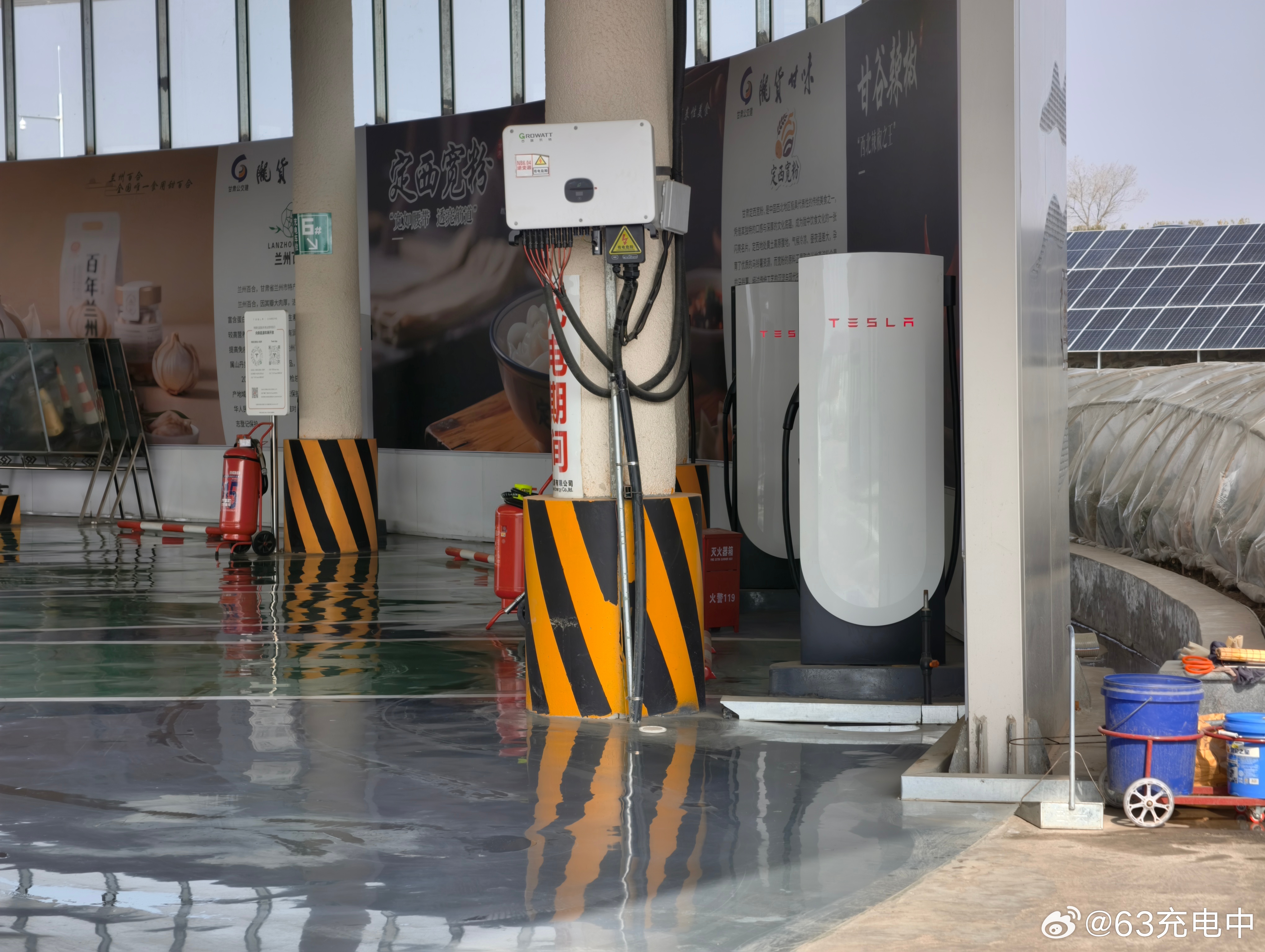 前段时间跑横穿中国的时候也在兰州的一个服务区就遇到了特斯拉 V4 超充。