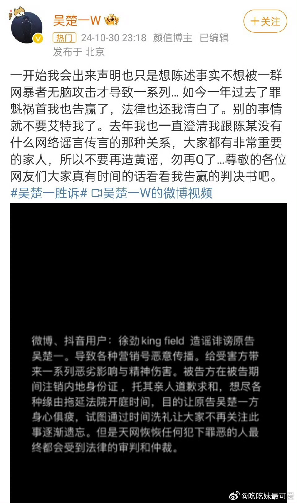 陈牧驰陈冰官宣生子……好了,陈牧驰可以重回内娱了。吴楚一也说他和陈牧驰没关系了。尘埃落定。