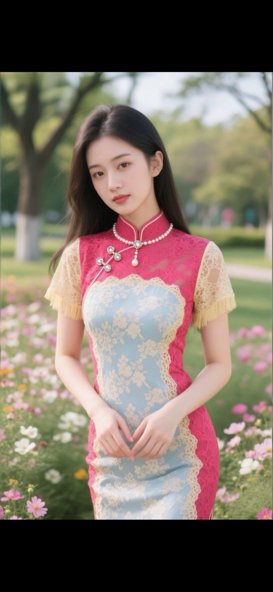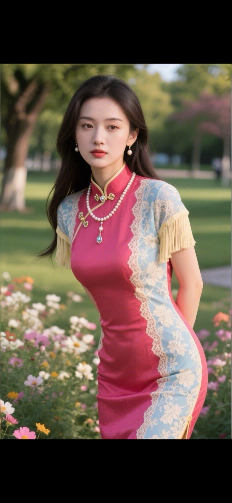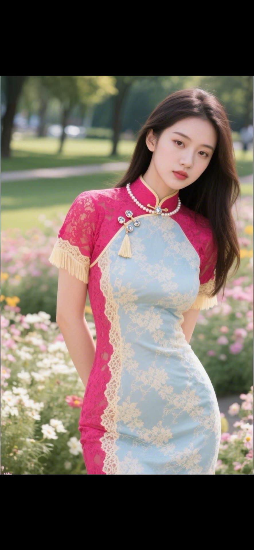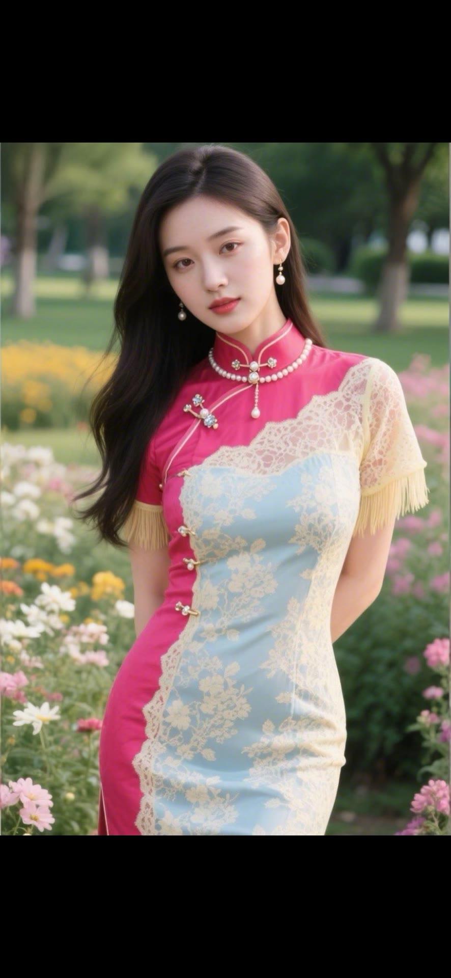 优雅旗袍,花海中的东方美人