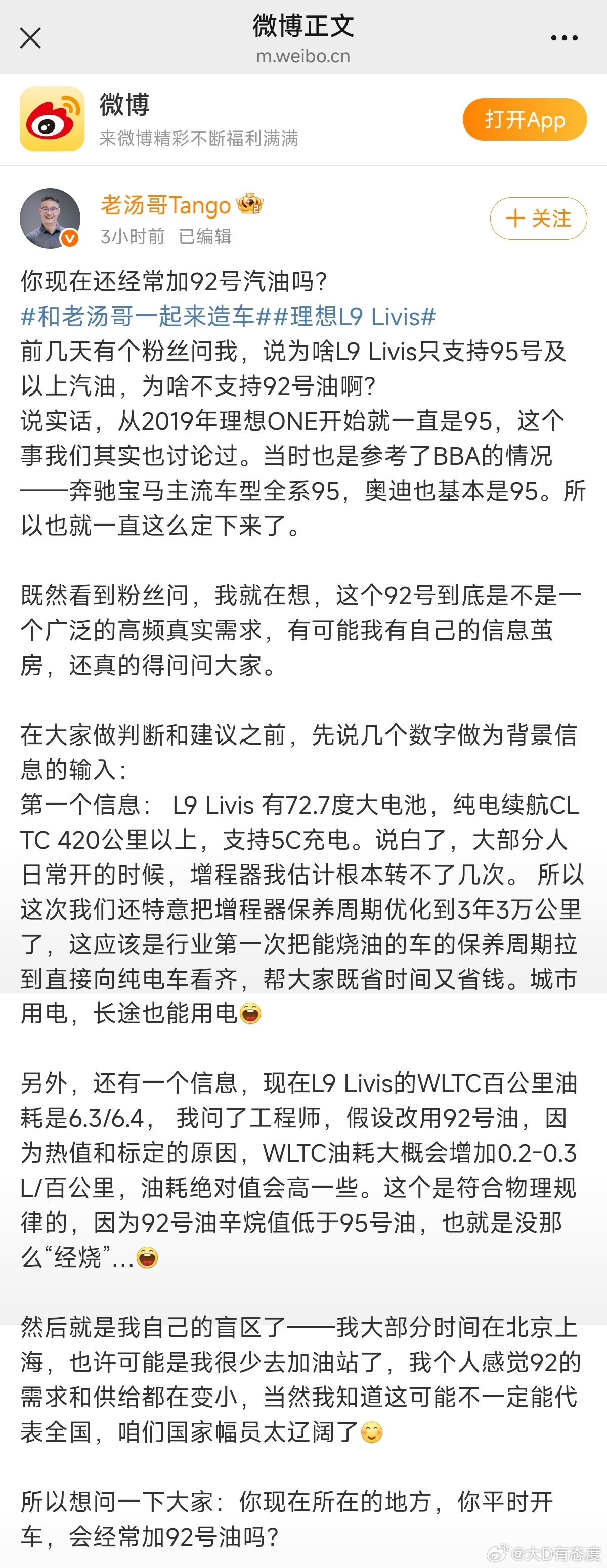 刚刚在群里看到大家对老汤哥关于92/95号汽油选择的讨论,我作为外行也参与一下: