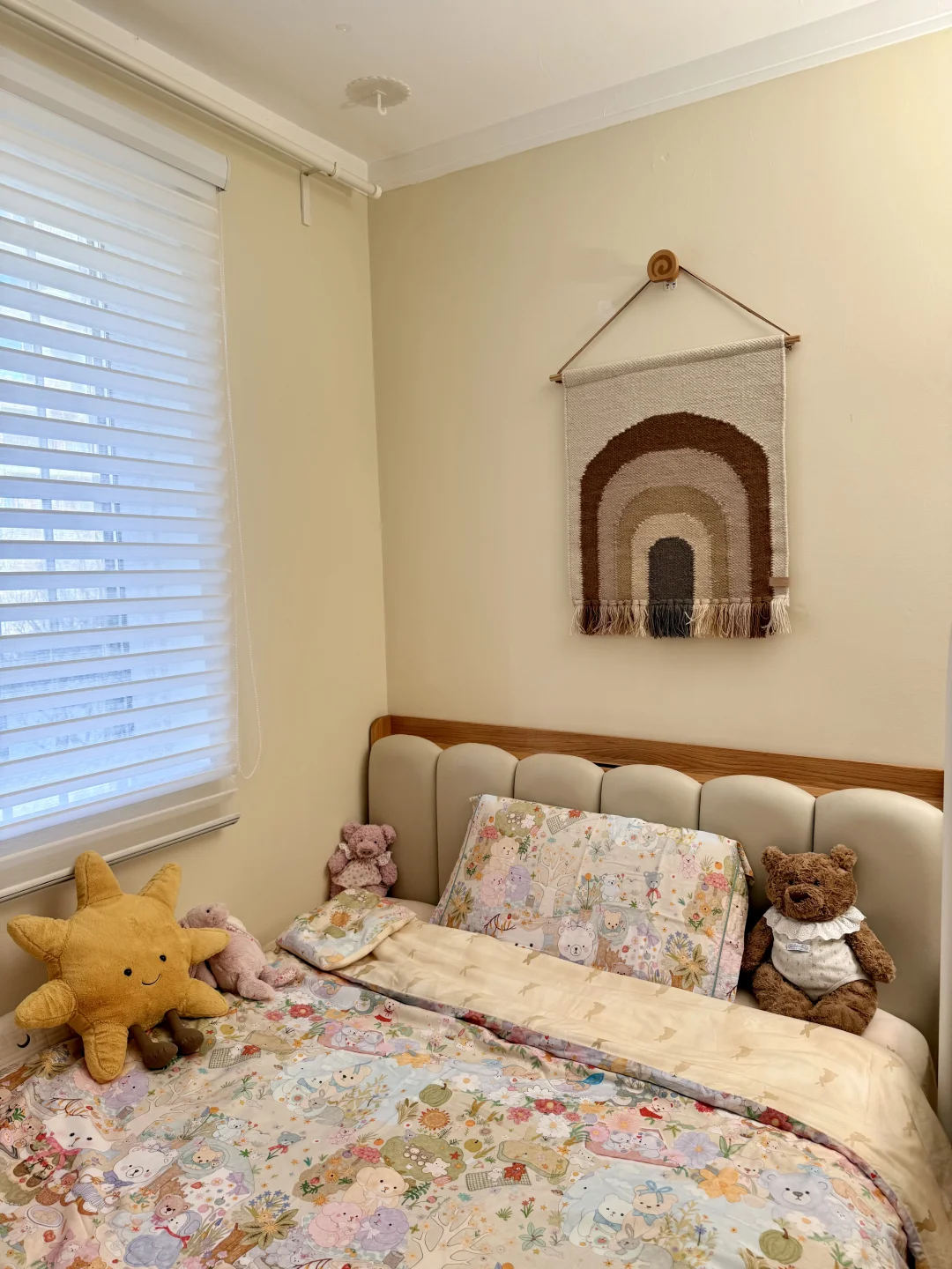 东北的冬天❄️实在太漫长了, 马上四月份了,外面居然还没有绿意, 关于家的布置尤其是女儿的房间, 我发现真的需要一些颜色进来, 才能让无聊的冬季显得温馨又有趣一些[郁金香R] 改造的时候,硬装不想大动,但又想看起来有点改变, 不妨试试软装改造,可以换一小块地毯、四件套 或者一些儿童房的小装饰,都可以带来一点新鲜感~