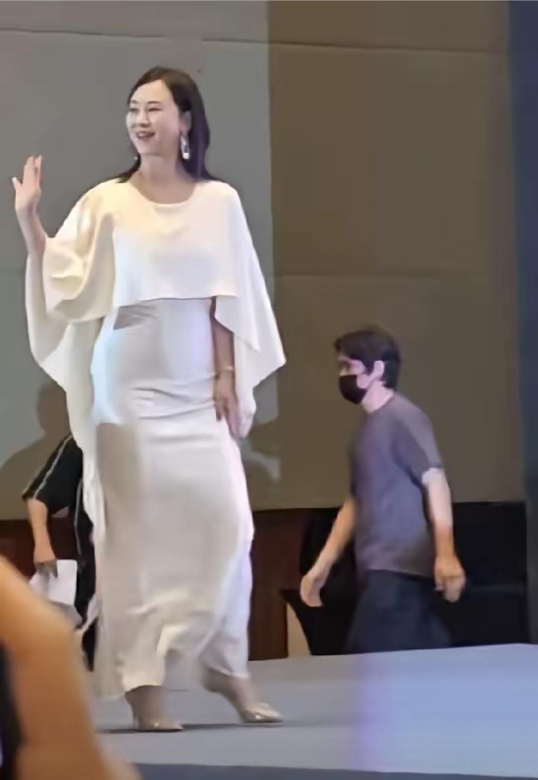 翁虹变胖了,圆润的脸,小腹凸起,明显身材走了样,但人状态挺好的,皮肤紧致,比以前看起还漂亮些,只是这次穿着,不该穿紧身裙子,显得有点胖。 其实上点年纪了,胖一点还好些,说明身体健康,还不那么显老。