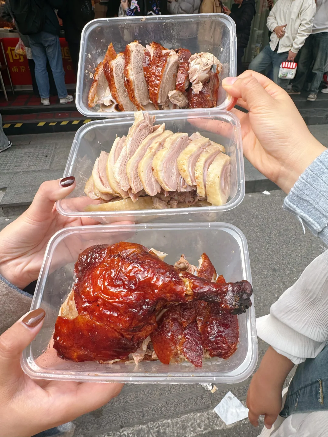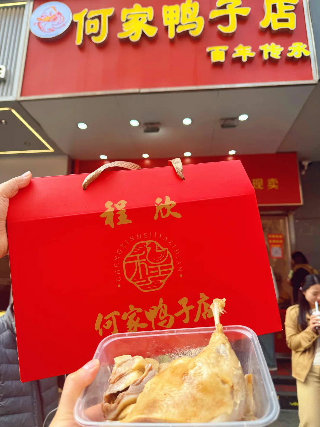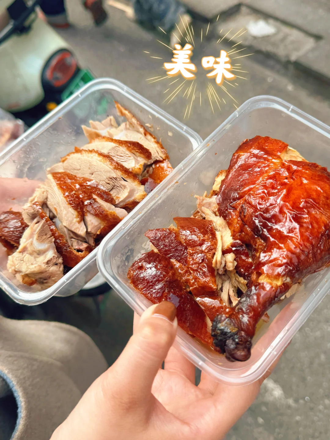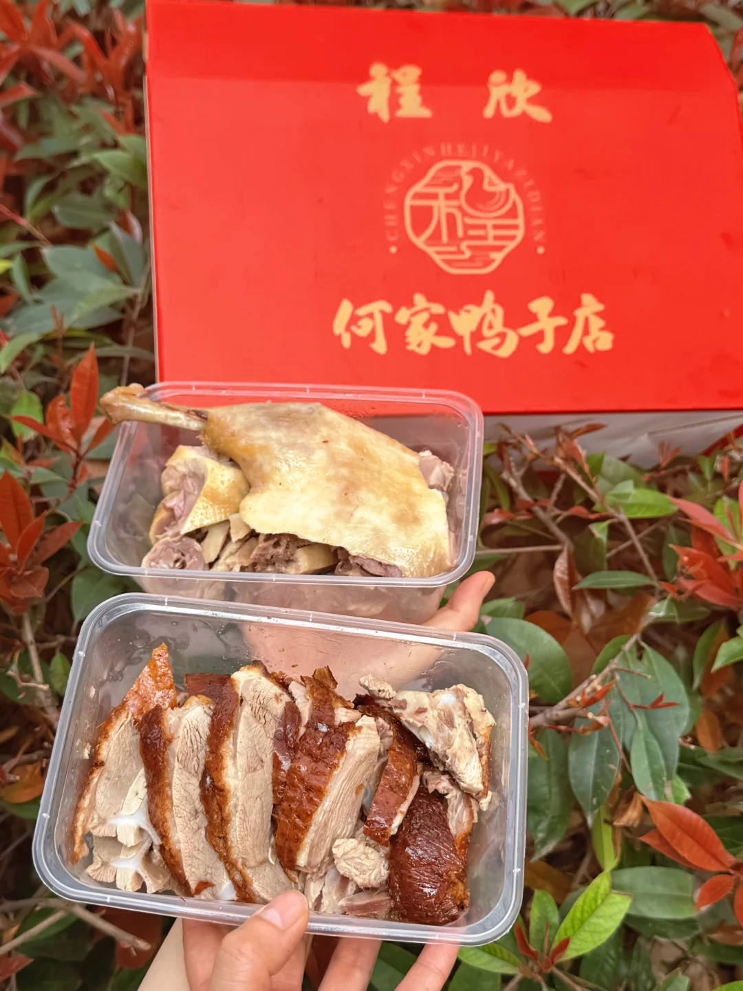 不是网红店,是那种路过就能看到爷叔阿姨排队zan鸭子的日常老店! 烤鸭每天现烤现斩,鸭皮焦香酥脆,浇上灵魂卤汁那一秒——南京胃直接苏醒! 盐水鸭更是一绝,咸鲜入骨,鸭肉细嫩不柴,是那种“老南京餐桌天天见”的踏实味道。 师傅斩鸭动作利落,橱窗里油亮亮的鸭子就是活招牌——仅此一家,别无分号,路过千万别错过🥢 春日正好,拎上半只鸭子去踏青野餐,便携不占地,清明返乡,也可带一份真空包装当伴手礼! 🏠何家鸭子店(新街口丰富路店)