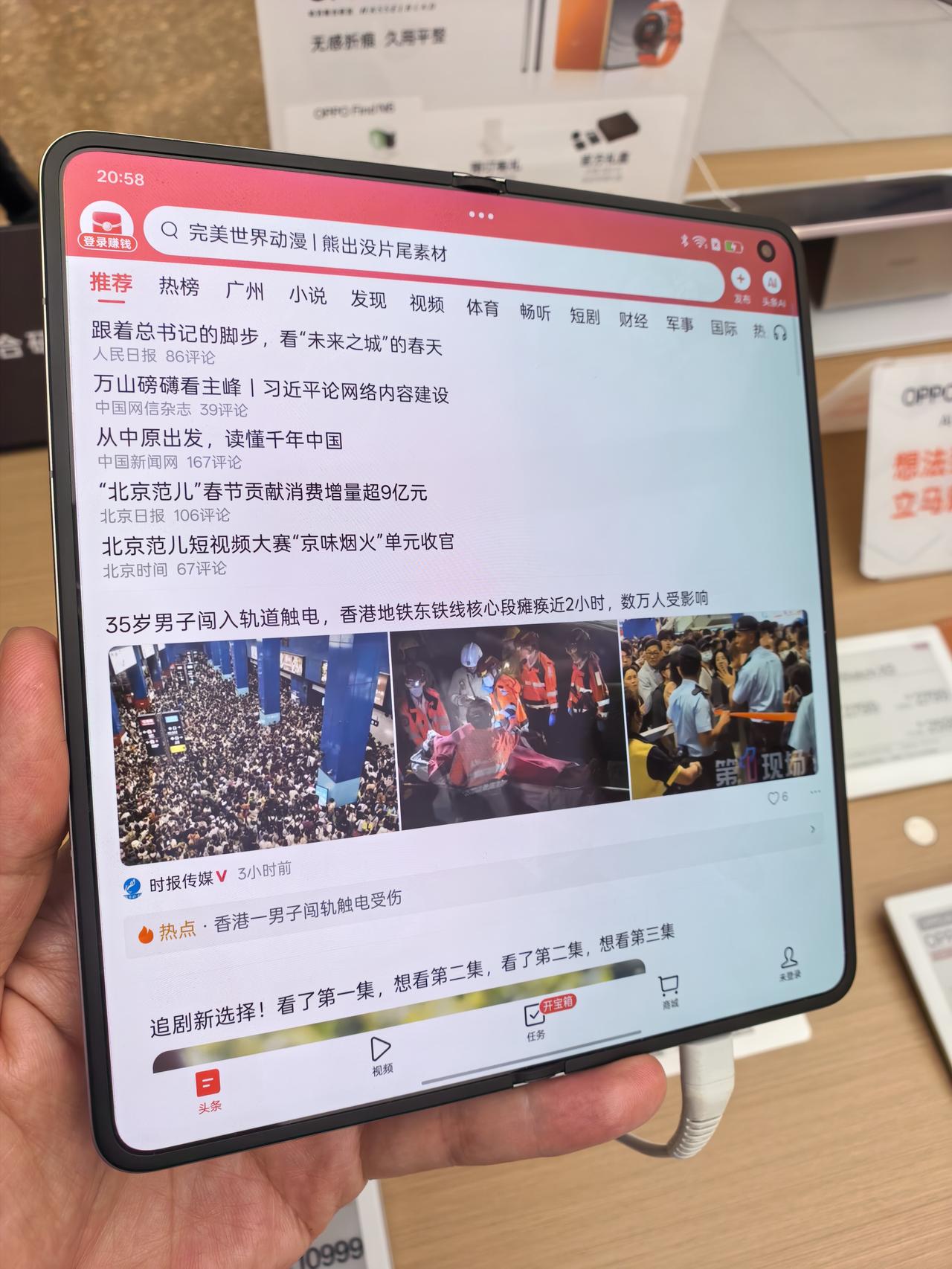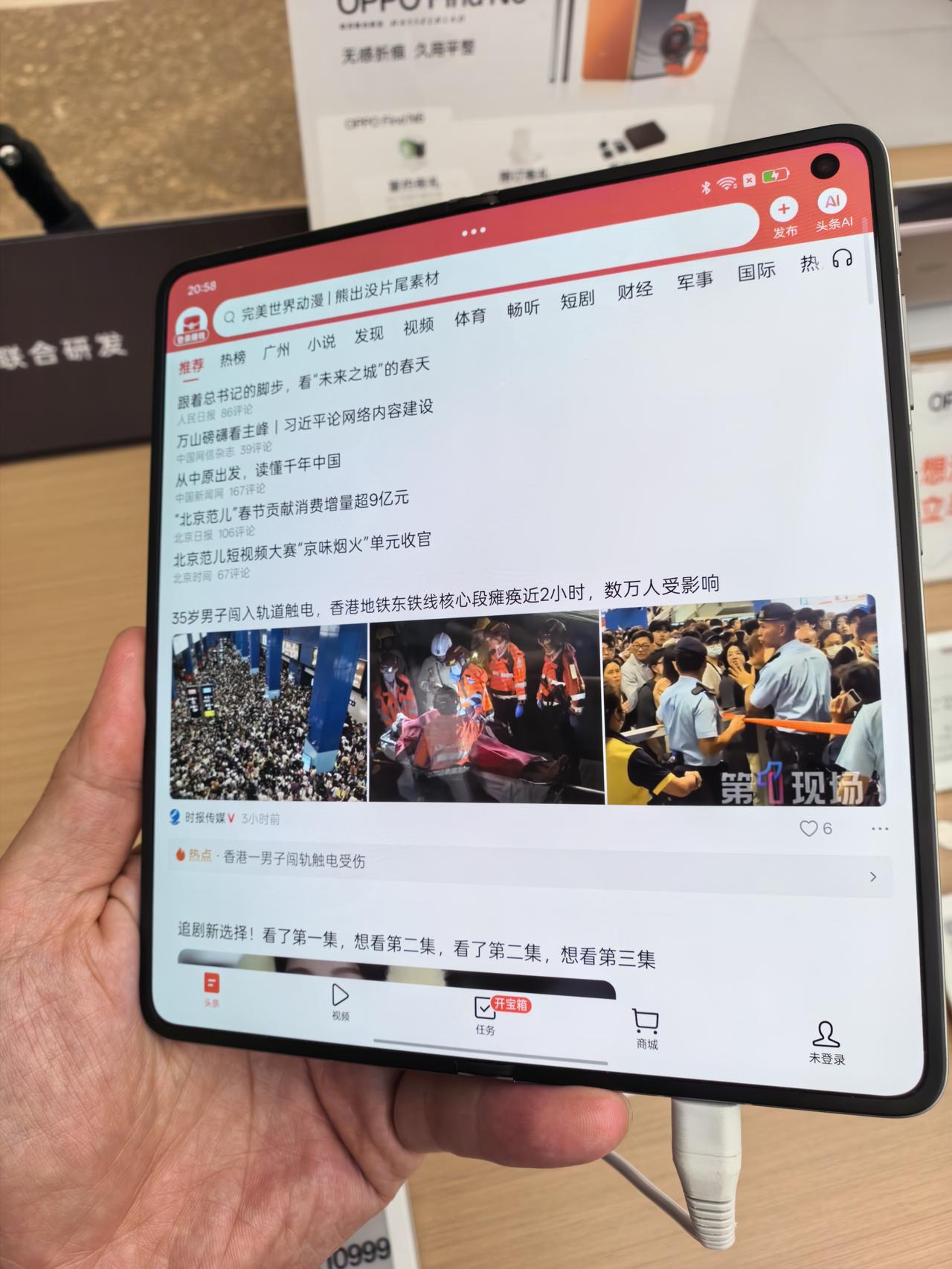 今晚带娃逛商场,摸了下OPPO Find N6这款折叠屏,是我目前摸过一众折叠里,屏幕折痕控制绝对的第一,没有之一。 日常平视基本看不见,也就特定角度强光下能轻微察觉,不知道用久了会怎么样。 整机做工、质感也都在线,重量也还可以。 完全能当主力机了。 但唯独卡在价格痛点上,起步就要9999属实偏高了! 折叠屏想要普及、价格一定得下探到五六千档位。目前折叠屏硬件已经很成熟,软件适配有些还差点意思,但无伤大雅,最重要的是价格没下来!