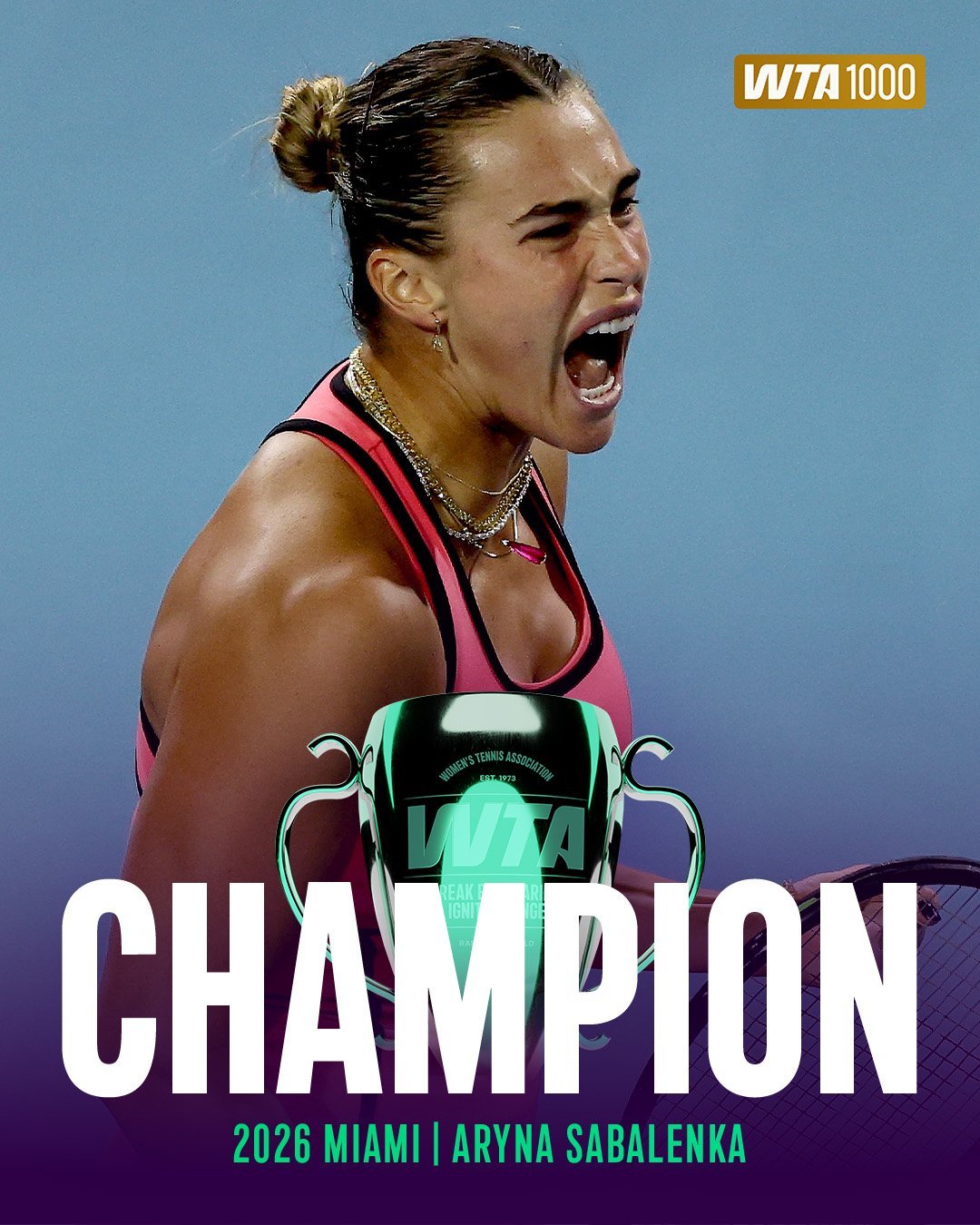 WTA1000迈阿密站决赛,头号种子萨巴伦卡经过三盘激战以6-2 4-6 6-3战胜4号种子高芙,成功实现卫冕,携12连胜解锁阳光双冠,这也是她职业生涯的第11个1000赛冠军。恭喜🎉