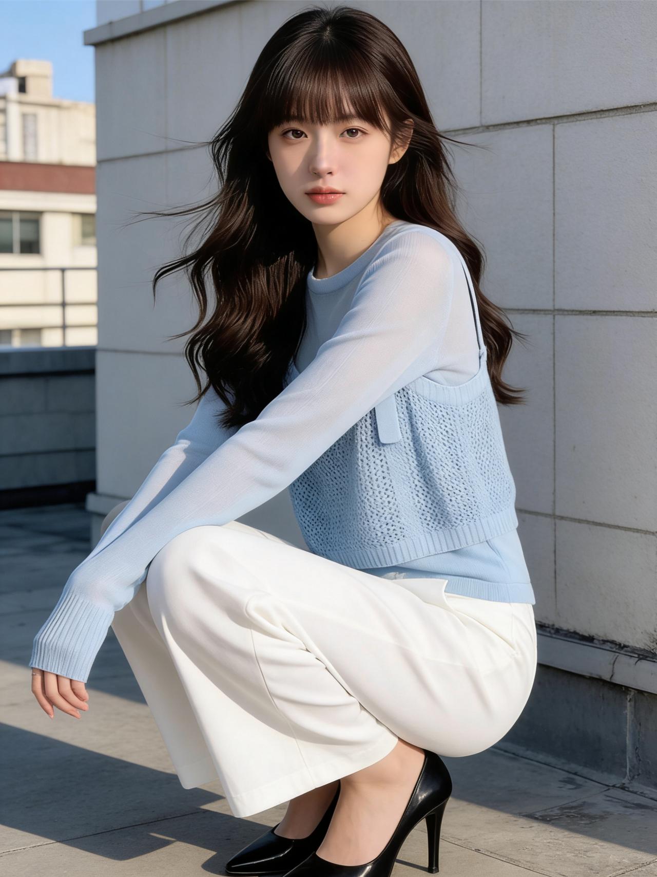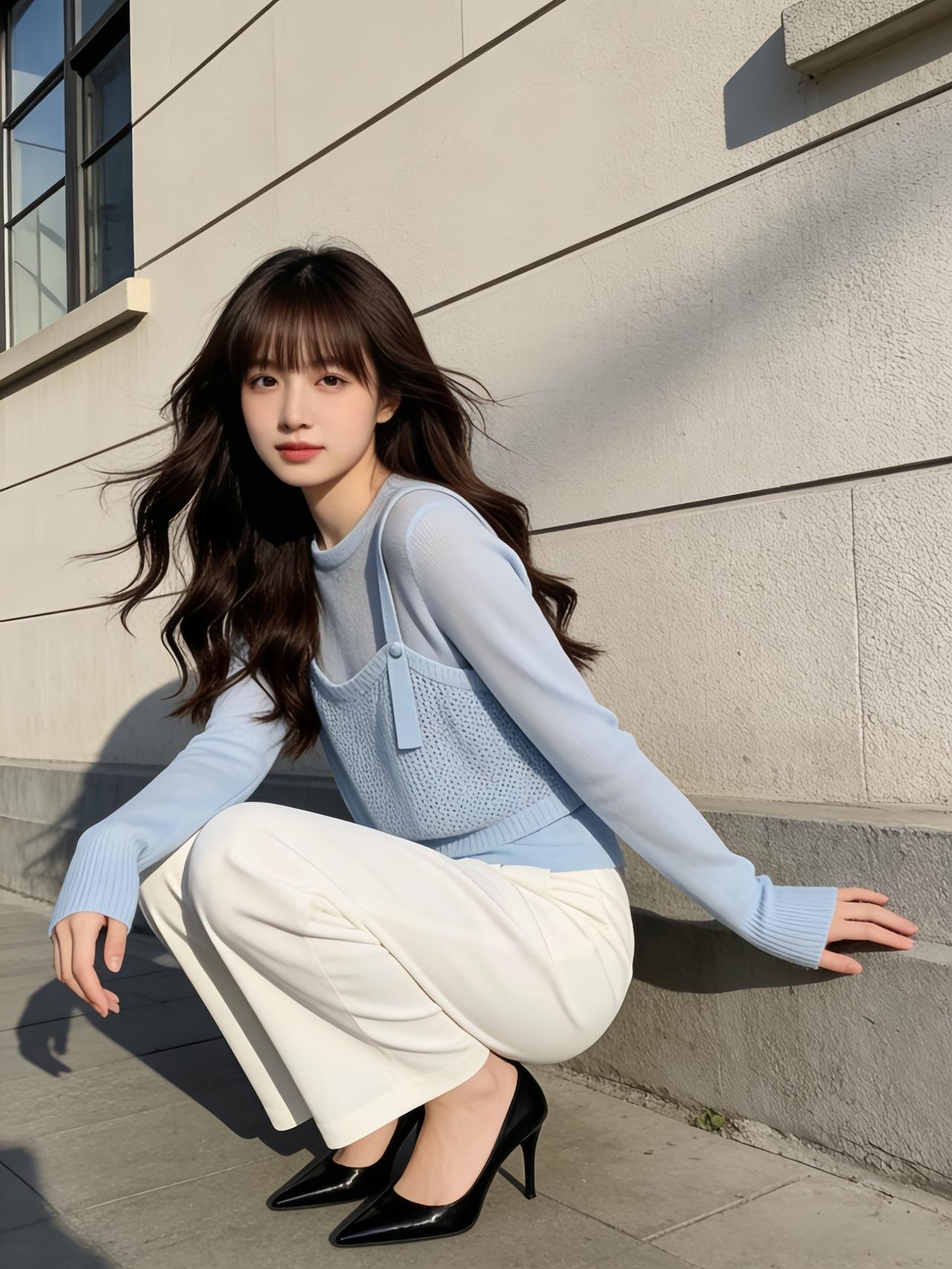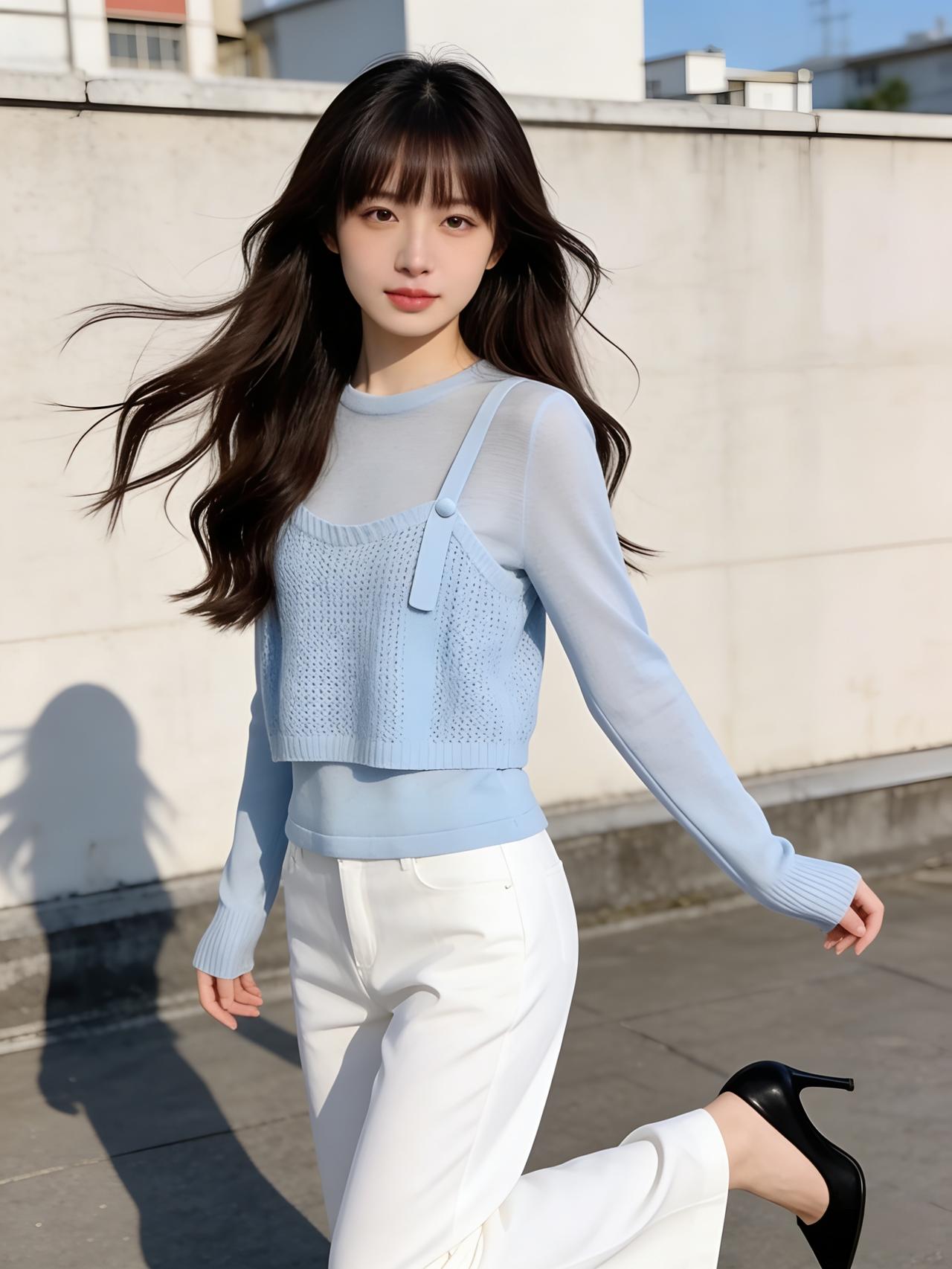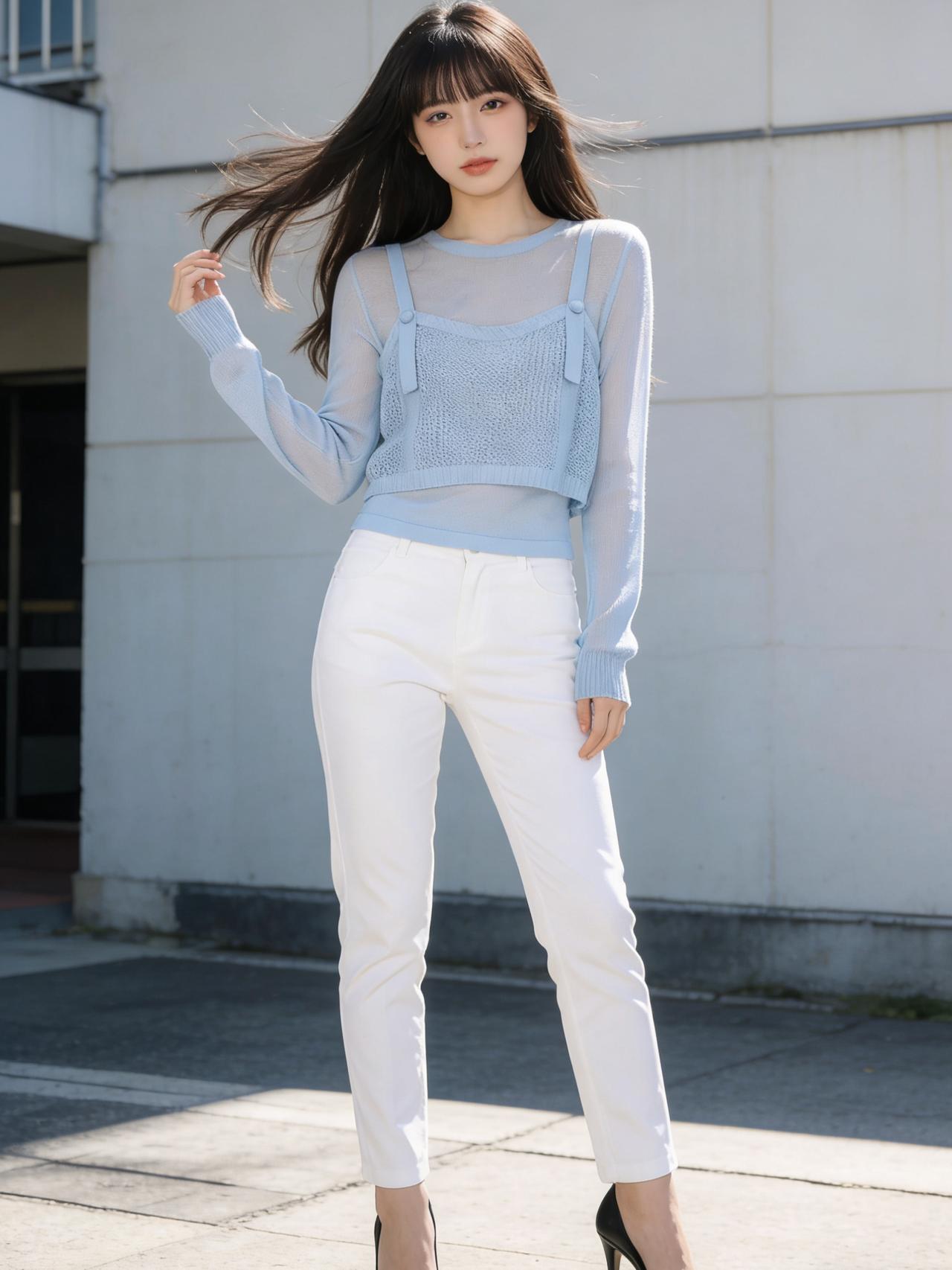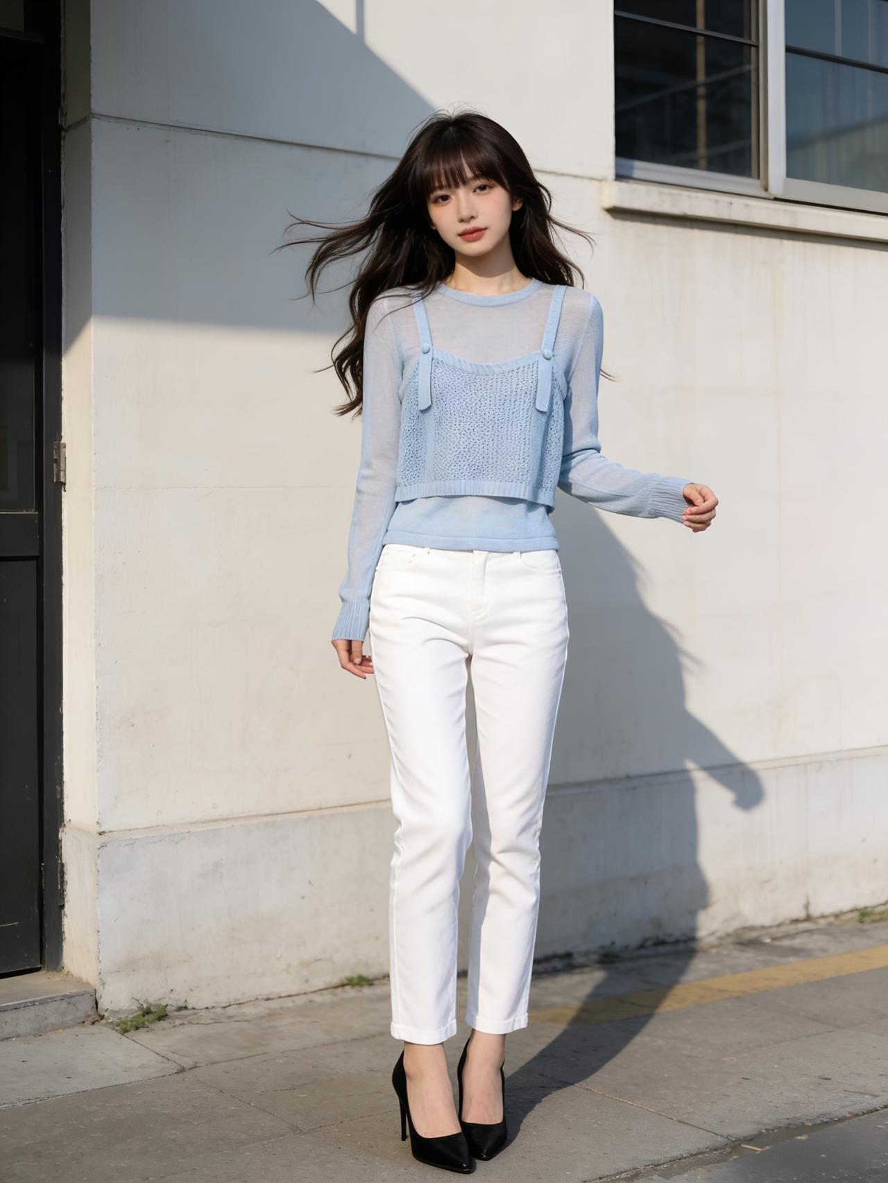 午后的阳光透过落地窗,斑驳地洒在木地板上。她静静地伫立在光影交错间,仿佛一幅定格的油画。 她身着一件蓝白相间的针织衫,那清新的色调宛如雨过天晴后的苍穹,云朵与蓝天在细腻的针脚中交织,透着一种不染纤尘的纯净。 下身搭配的白色长裤剪裁得体,流畅的线条勾勒出她修长的身形,显得干练而不失柔美。女孩子怎么穿搭既时尚又好看? 美女们快来分享自己的穿搭吧!