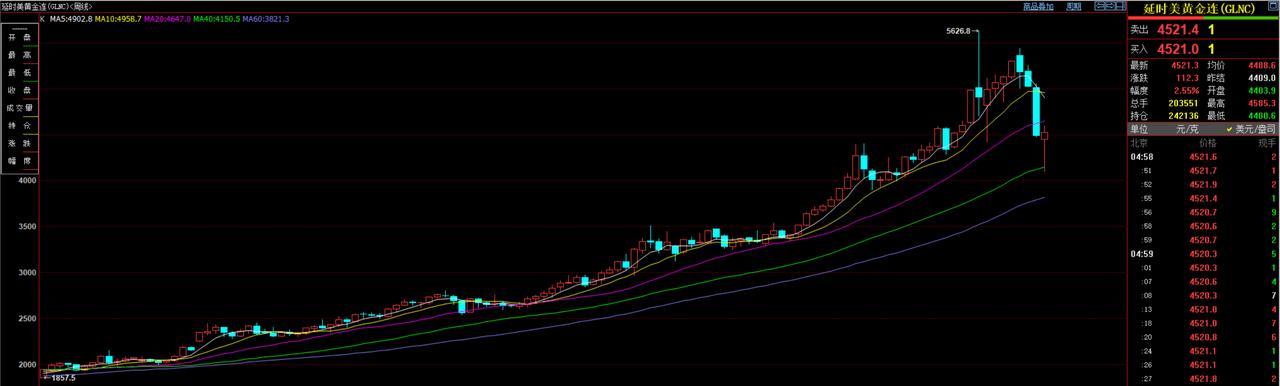 刚刚过去的一周, 国际金价止跌回升。 当周国际金价开盘价为4450美元/盎司, 盘中最高价4601美元/盎司, 最低价4100美元/盎司, 收盘价4521.3美元/盎司, 上涨29.3美元,涨幅0.65%。 希望继续上涨吧,重回四千七百美元。