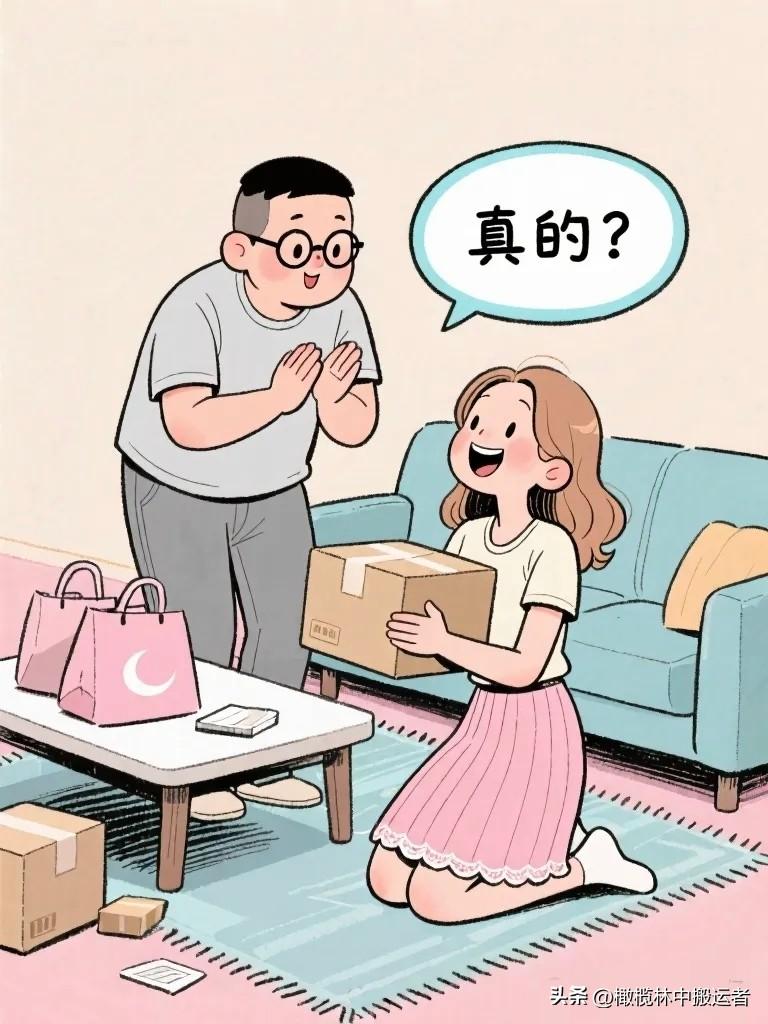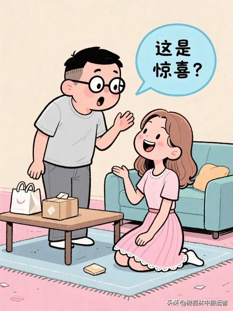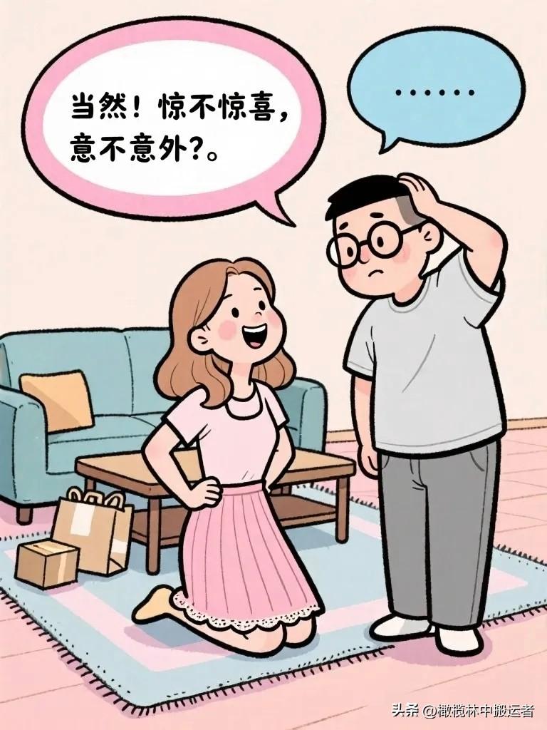 趣味漫画:老婆拆快递,老公凑过来:“又买啥了?”老婆神秘一笑:“给你的惊喜。”老