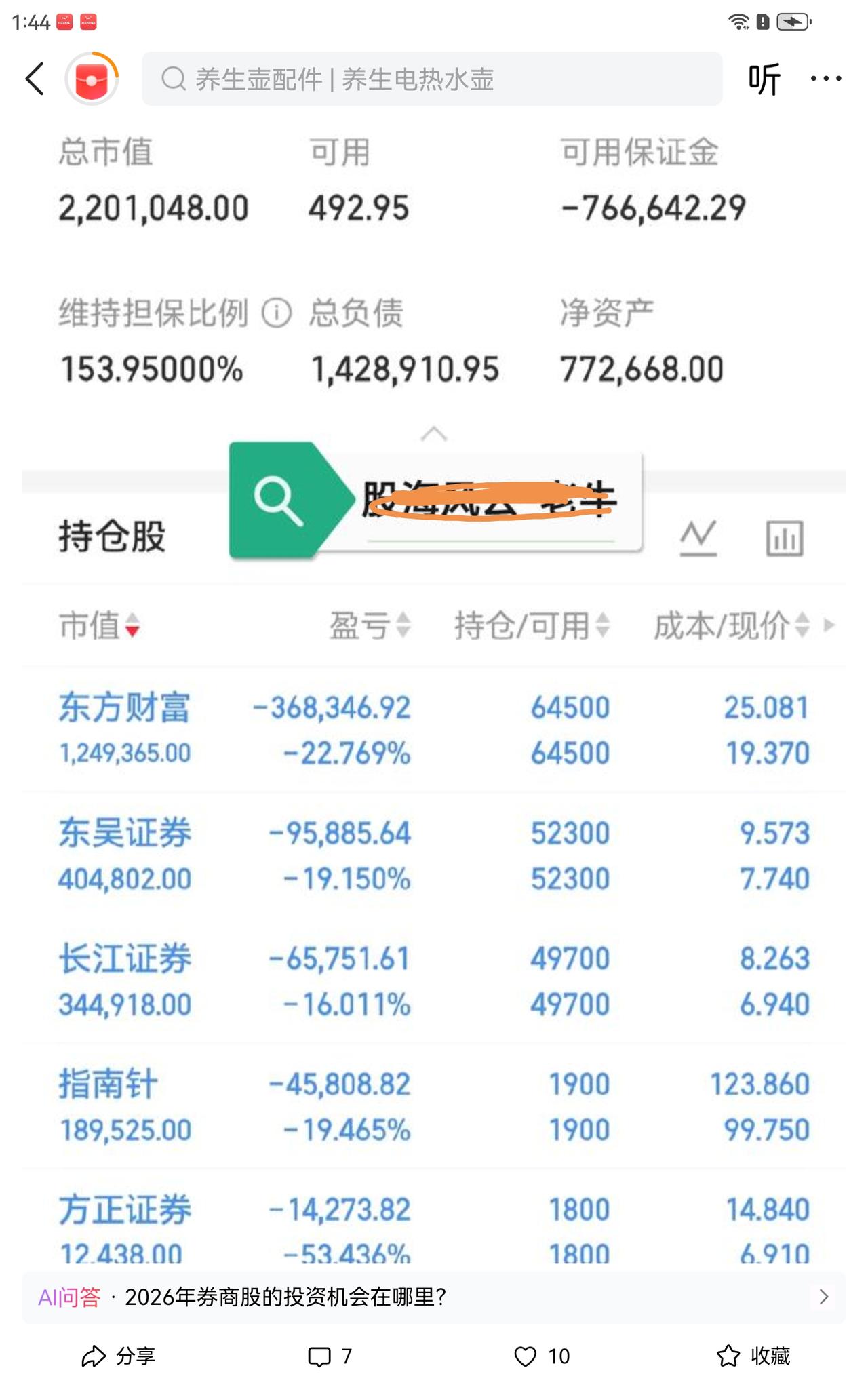 我没有券商,但我更希望券商重返牛途,不过希望归希望,现实是,扎堆券商的散户太多了,有的散户不仅满仓而且还满融,这样给大资金们出了难题,资本市场的常识,都是散户筹码充分交换给机构后,反转趋势才成为可能,现在每天都有满仓甚至满融的投资在晒亏损,咋整?耐心等待吧。期待曙光照耀你们受伤的心灵,更希望国家队助一臂之力。